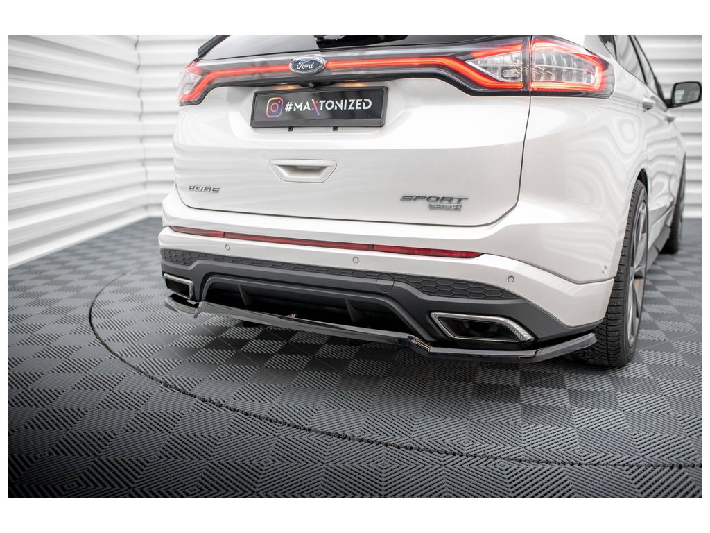 Maxton Design středový spoiler pod zadní nárazník s žebrováním pro vozidlo Ford Edge Mk2 Sport . Povrchová úprava spoileru černý lesklý plast ABS.