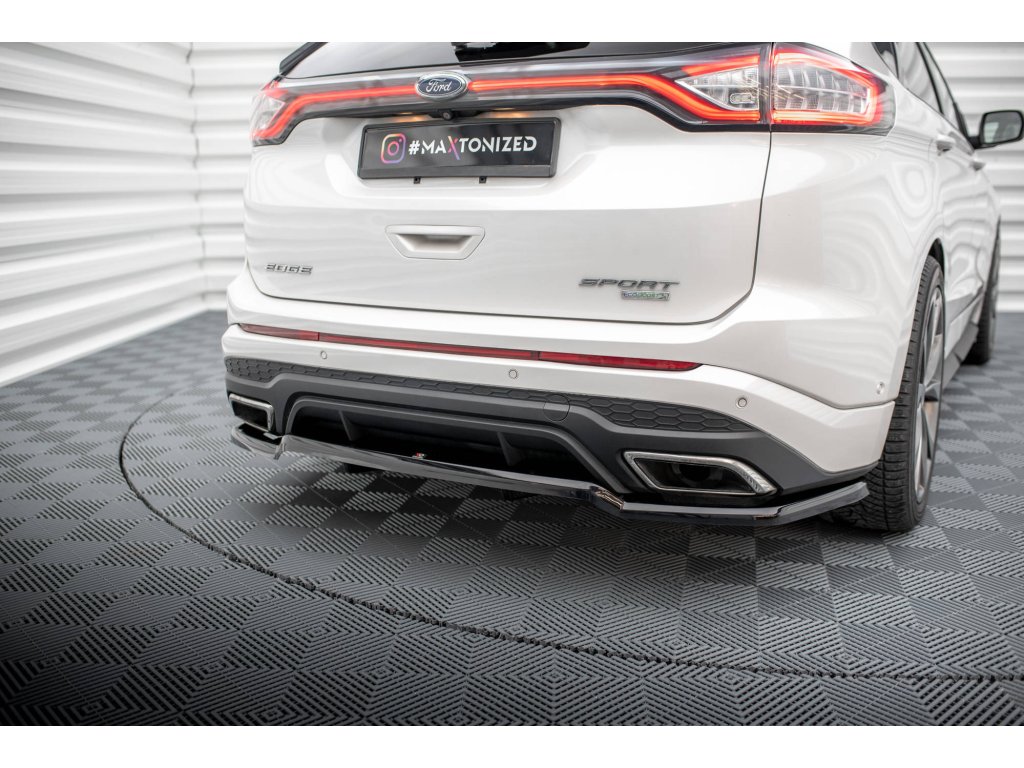 Maxton Design středový spoiler pod zadní nárazník s žebrováním pro Ford Edge Mk2 Sport, černý lesklý plast ABS