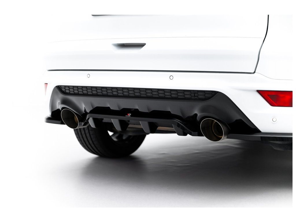 Maxton Design středový spoiler pod zadní nárazník s žebrováním pro Ford Kuga Mk2 ST-Line, černý lesklý plast ABS