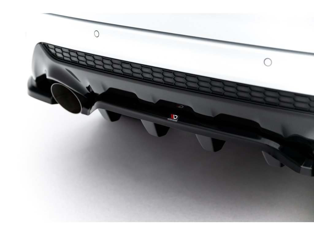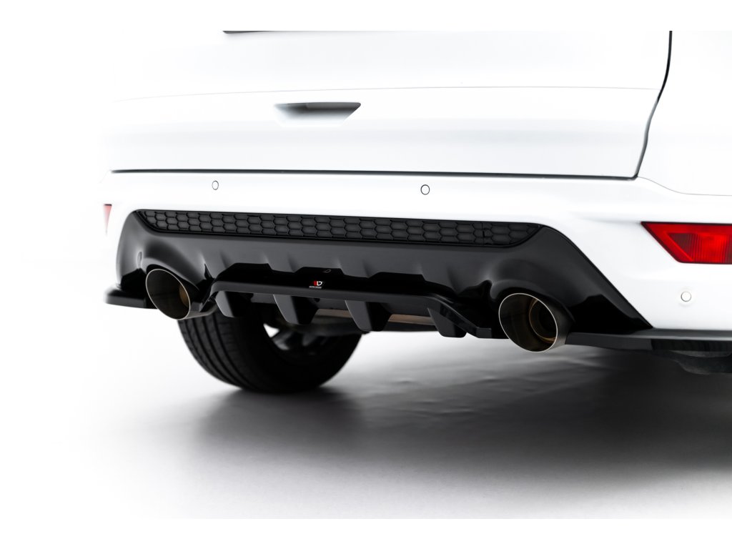 Maxton Design středový spoiler pod zadní nárazník s žebrováním pro vozidlo Ford Kuga Mk2 ST-Line . Povrchová úprava spoileru černý lesklý plast ABS.