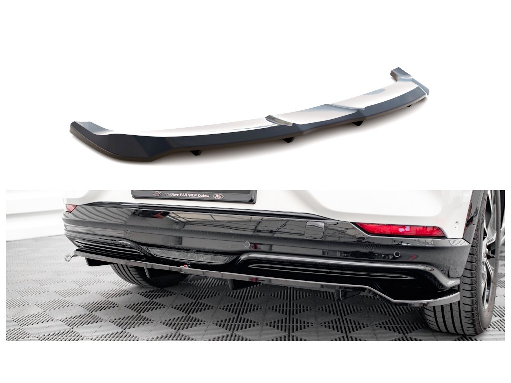 Maxton Design středový spoiler pod zadní nárazník s žebrováním pro Ford Mustang Mach-E Mk1, carbon-Look