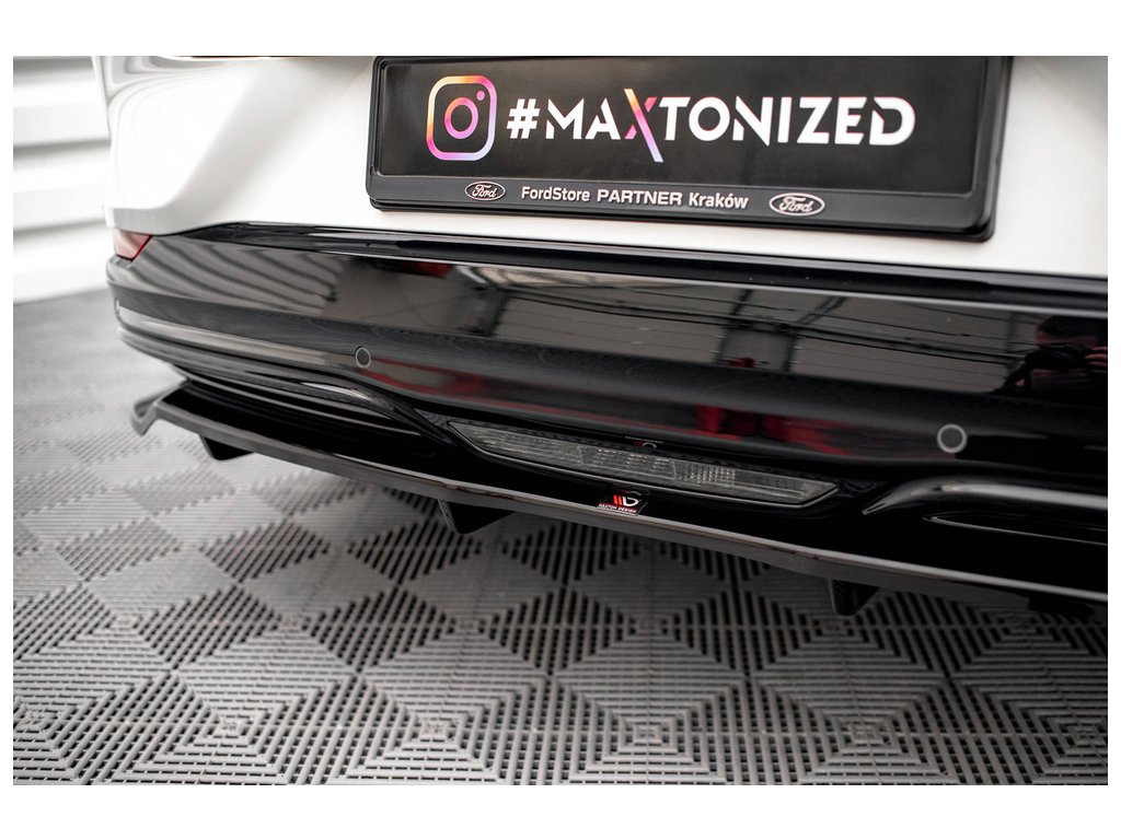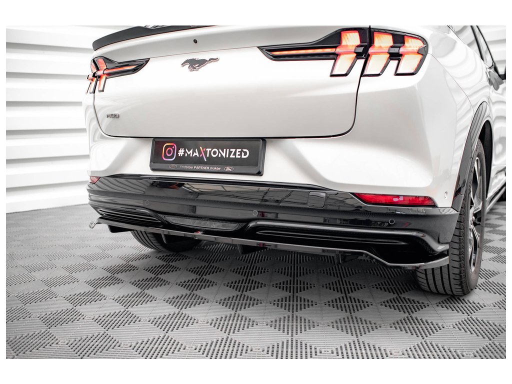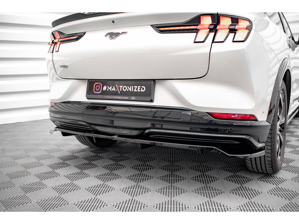Maxton Design středový spoiler pod zadní nárazník s žebrováním pro Ford Mustang Mach-E Mk1, černý lesklý plast ABS