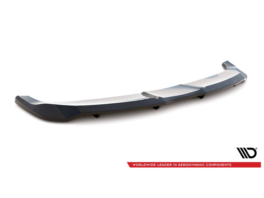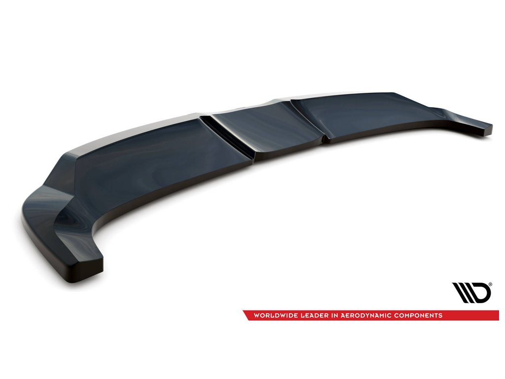 Maxton Design středový spoiler pod zadní nárazník s žebrováním pro vozidlo Ford Mustang Mach-E Mk1 . Povrchová úprava spoileru černý lesklý plast ABS.