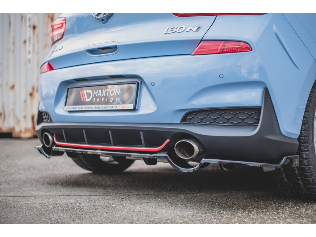 Maxton Design středový spoiler pod zadní nárazník s žebrováním pro Hyundai i30 N Mk3, carbon-Look, hatchback