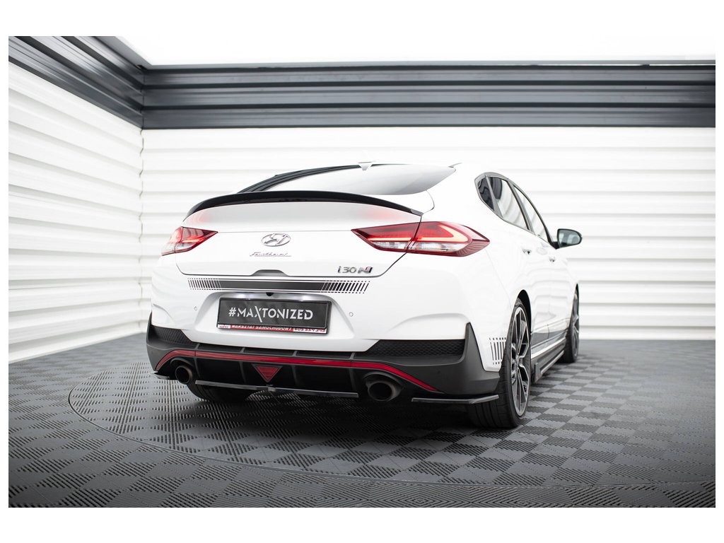 Maxton Design středový spoiler pod zadní nárazník s žebrováním pro Hyundai i30 N Mk3, černý lesklý plast ABS, fastback