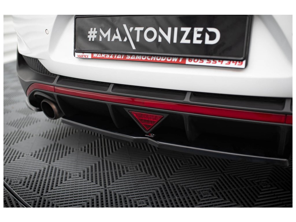 Maxton Design středový spoiler pod zadní nárazník s žebrováním pro vozidlo Hyundai i30 N Mk3 . Povrchová úprava spoileru černý lesklý plast ABS.