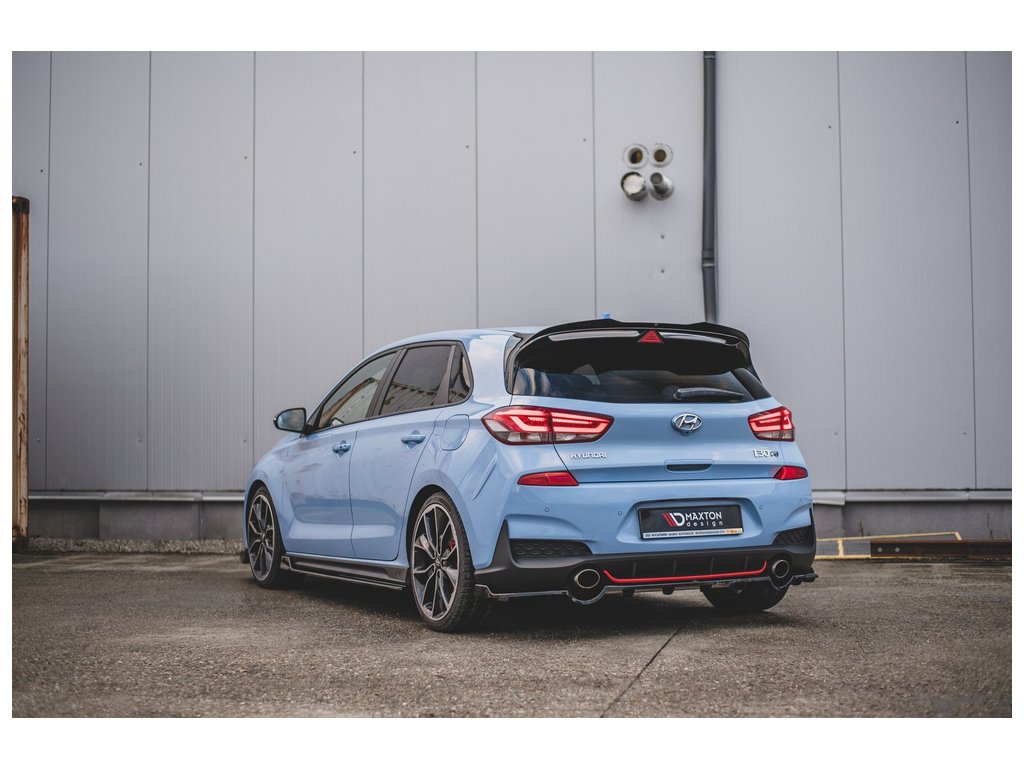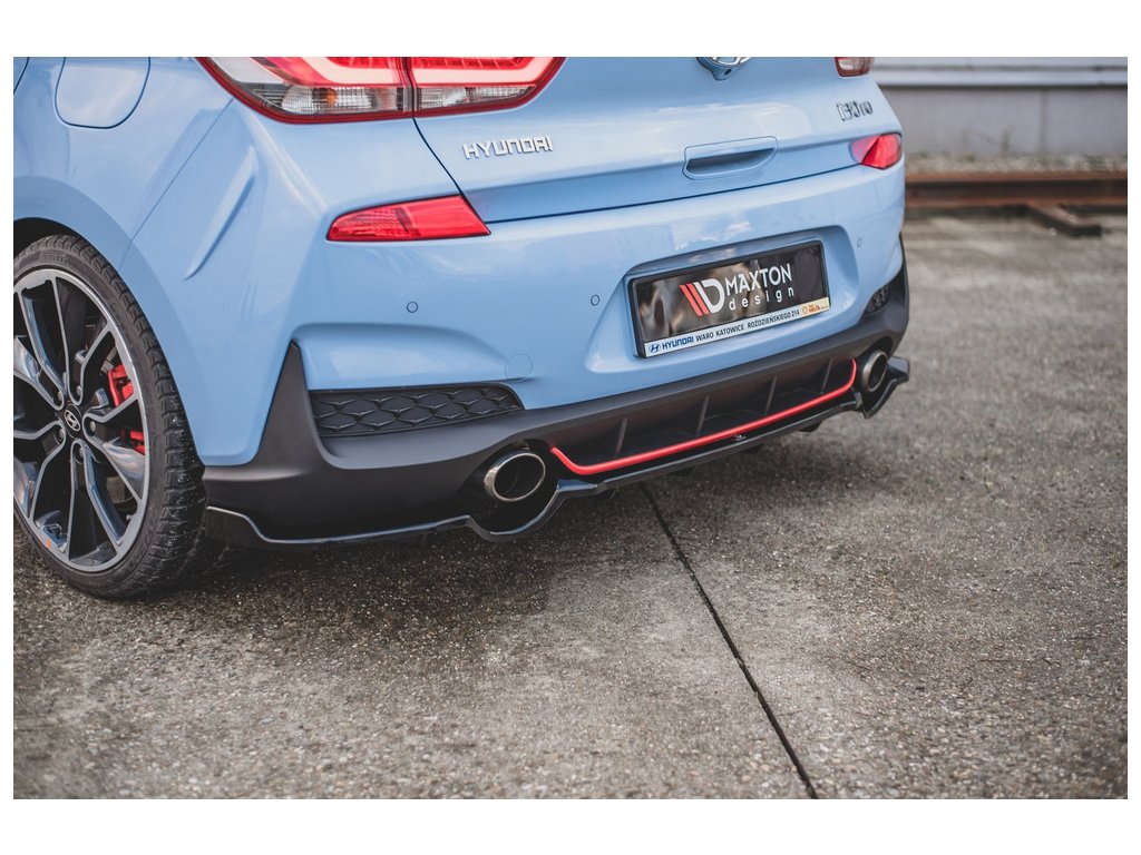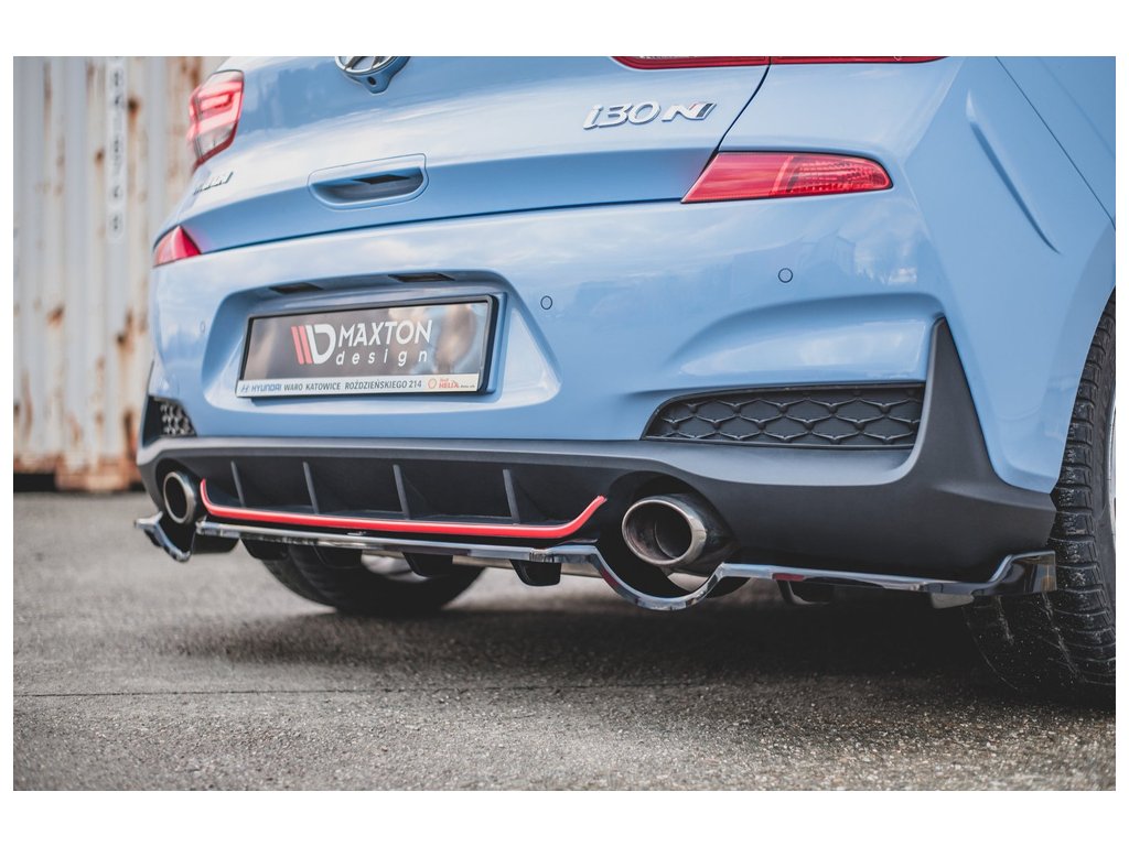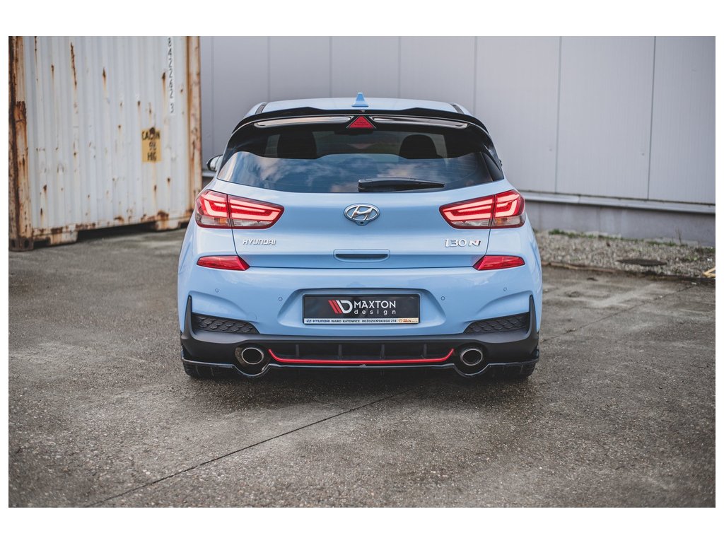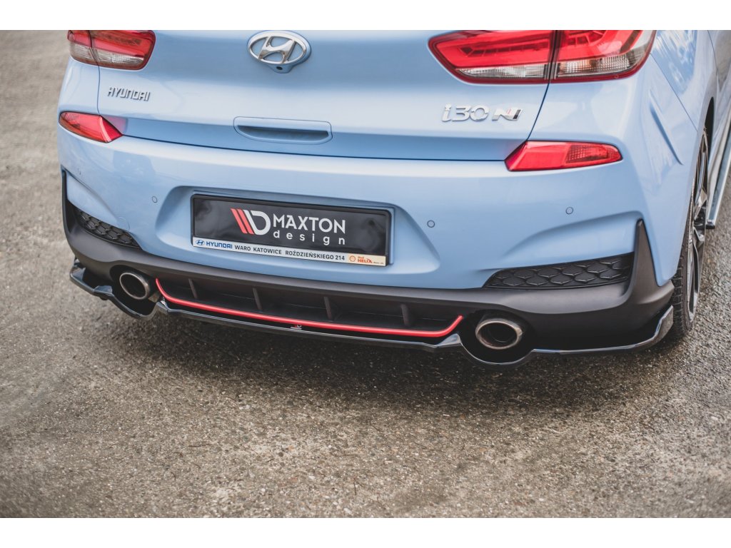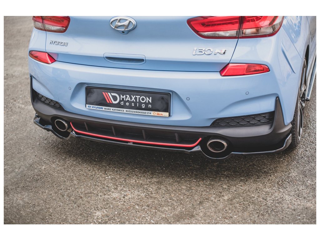 Maxton Design středový spoiler pod zadní nárazník s žebrováním pro Hyundai i30 N Mk3, černý lesklý plast ABS, hatchback