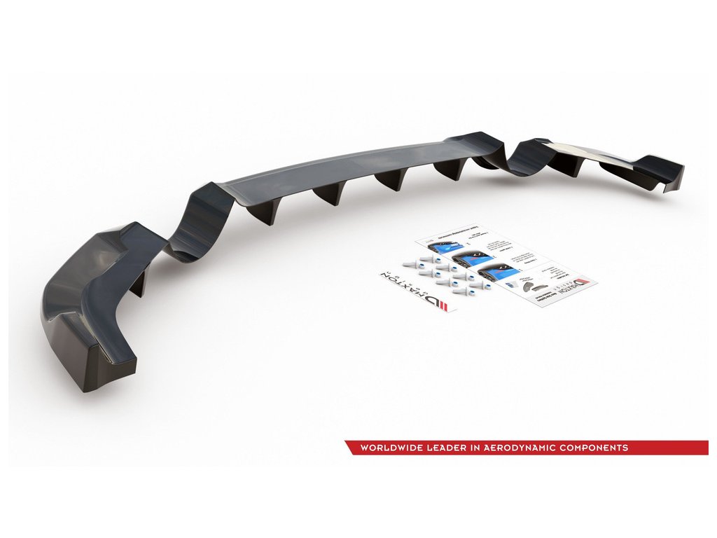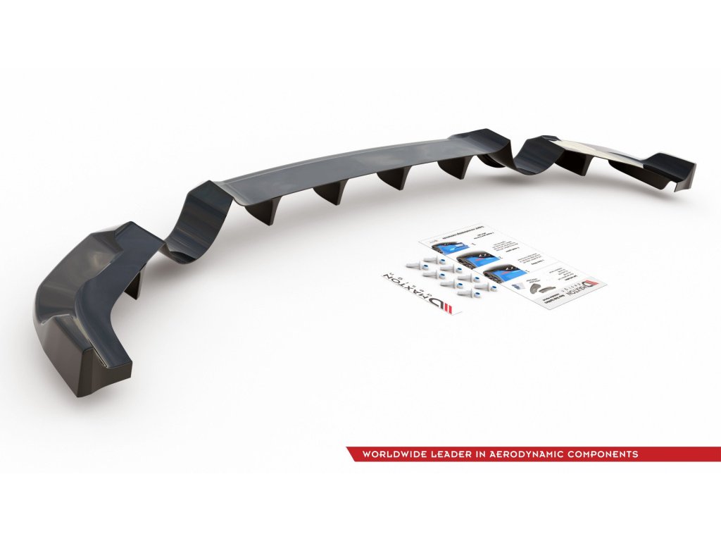 Maxton Design středový spoiler pod zadní nárazník s žebrováním pro vozidlo Hyundai i30 N Mk3 . Povrchová úprava spoileru černý lesklý plast ABS.