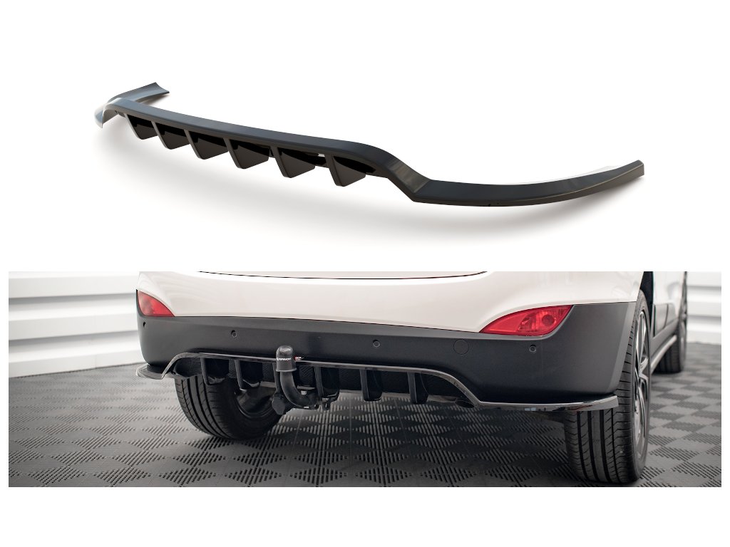 Maxton Design středový spoiler pod zadní nárazník s žebrováním pro vozidlo Hyundai ix35 Mk1 . Povrchová úprava spoileru carbon-Look.