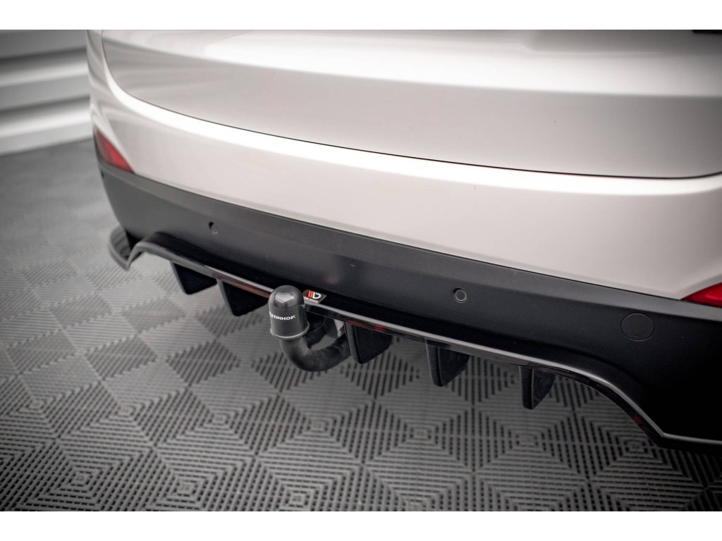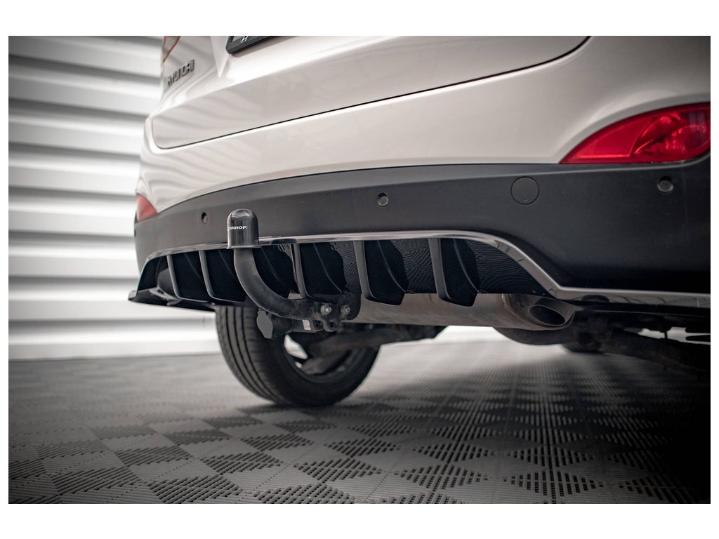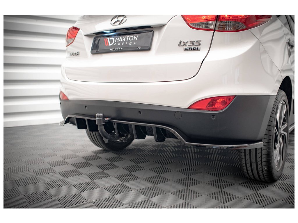 Maxton Design středový spoiler pod zadní nárazník s žebrováním pro vozidlo Hyundai ix35 Mk1 . Povrchová úprava spoileru černý lesklý plast ABS.
