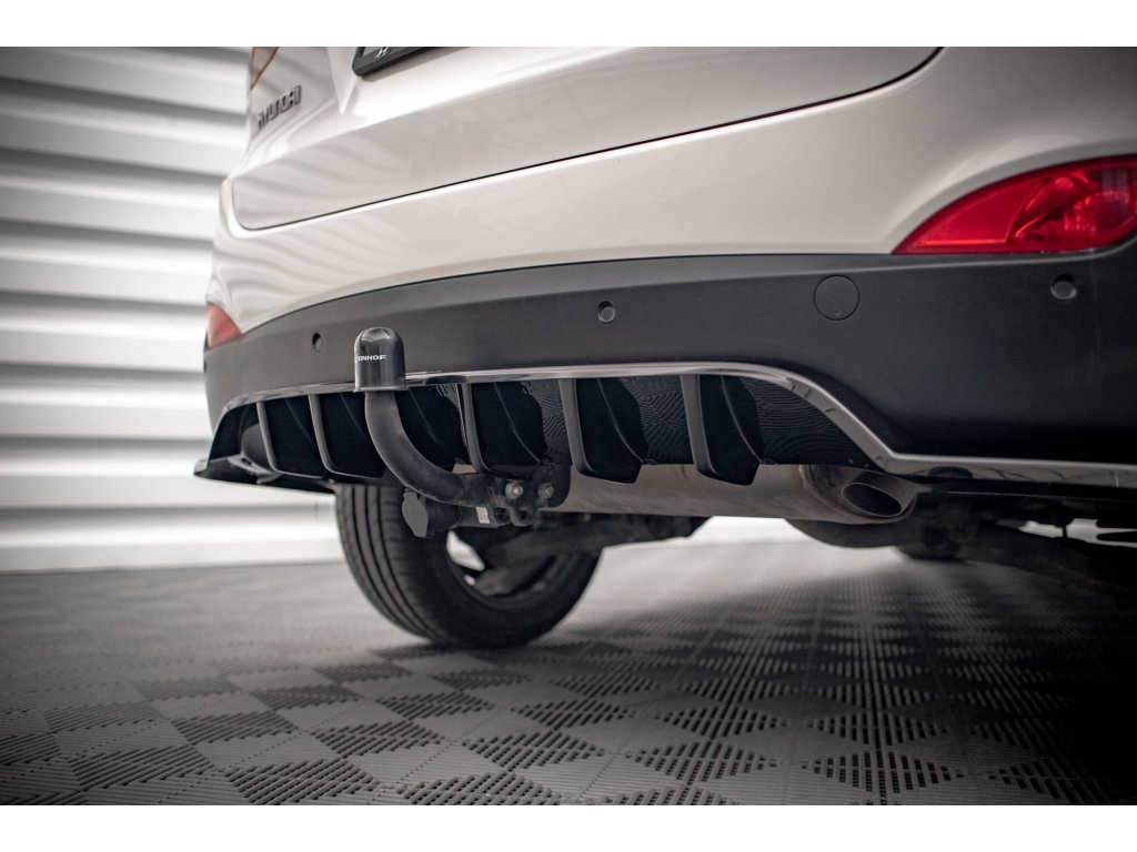 Maxton Design středový spoiler pod zadní nárazník s žebrováním pro Hyundai ix35 Mk1, černý lesklý plast ABS