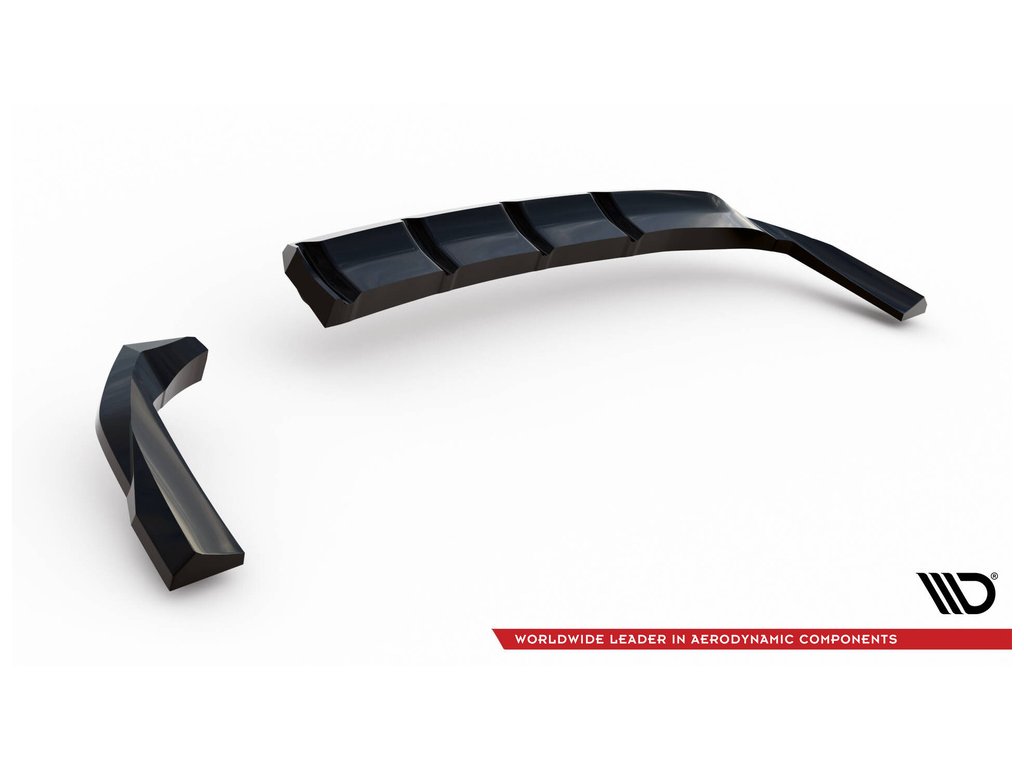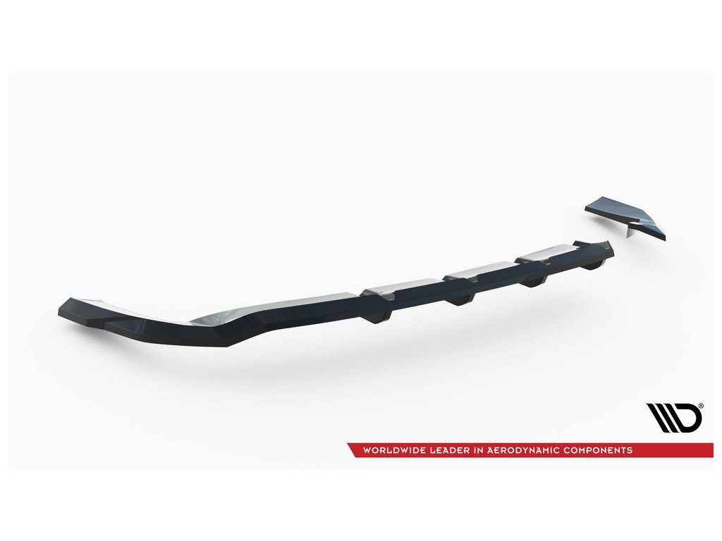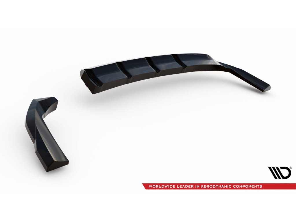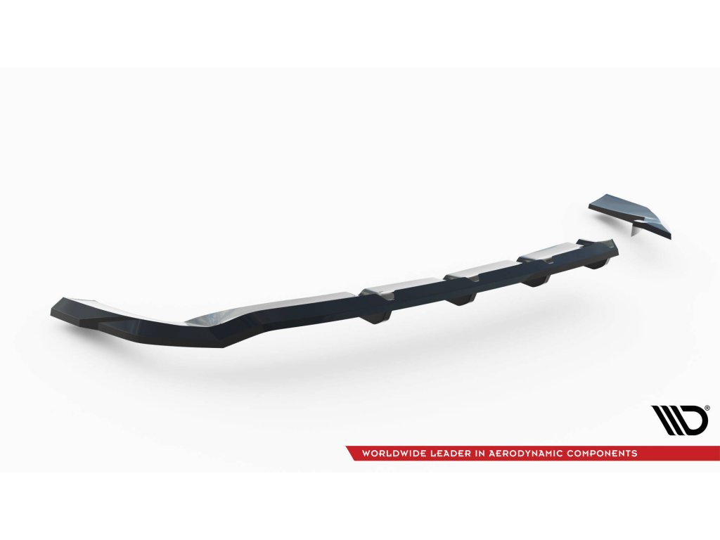 Maxton Design středový spoiler pod zadní nárazník s žebrováním pro vozidlo Hyundai Tucson Mk4 . Povrchová úprava spoileru černý lesklý plast ABS.