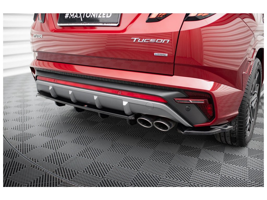 Maxton Design středový spoiler pod zadní nárazník s žebrováním pro Hyundai Tucson Mk4, černý lesklý plast ABS, N-Line