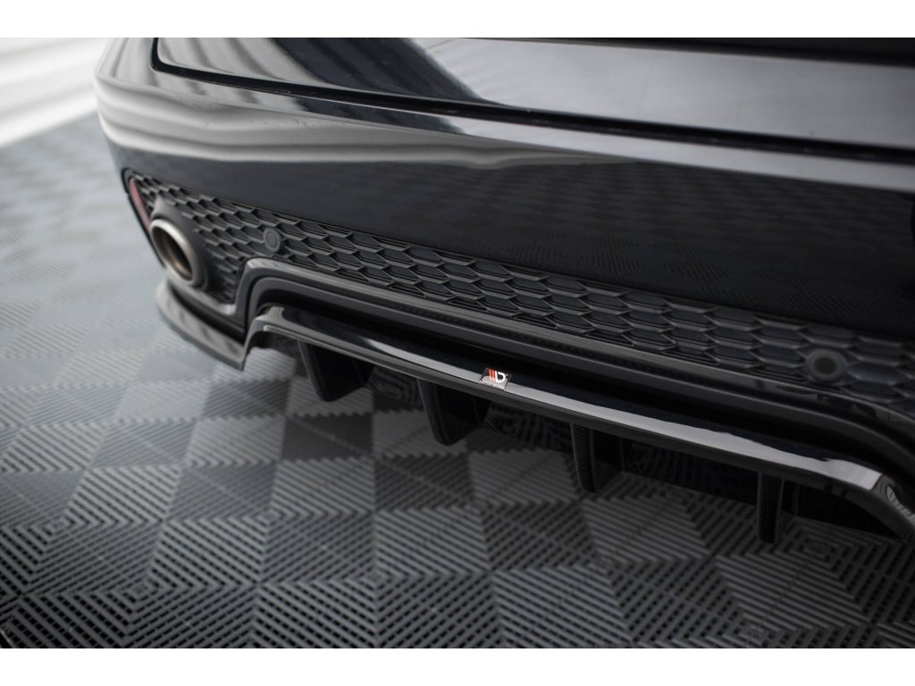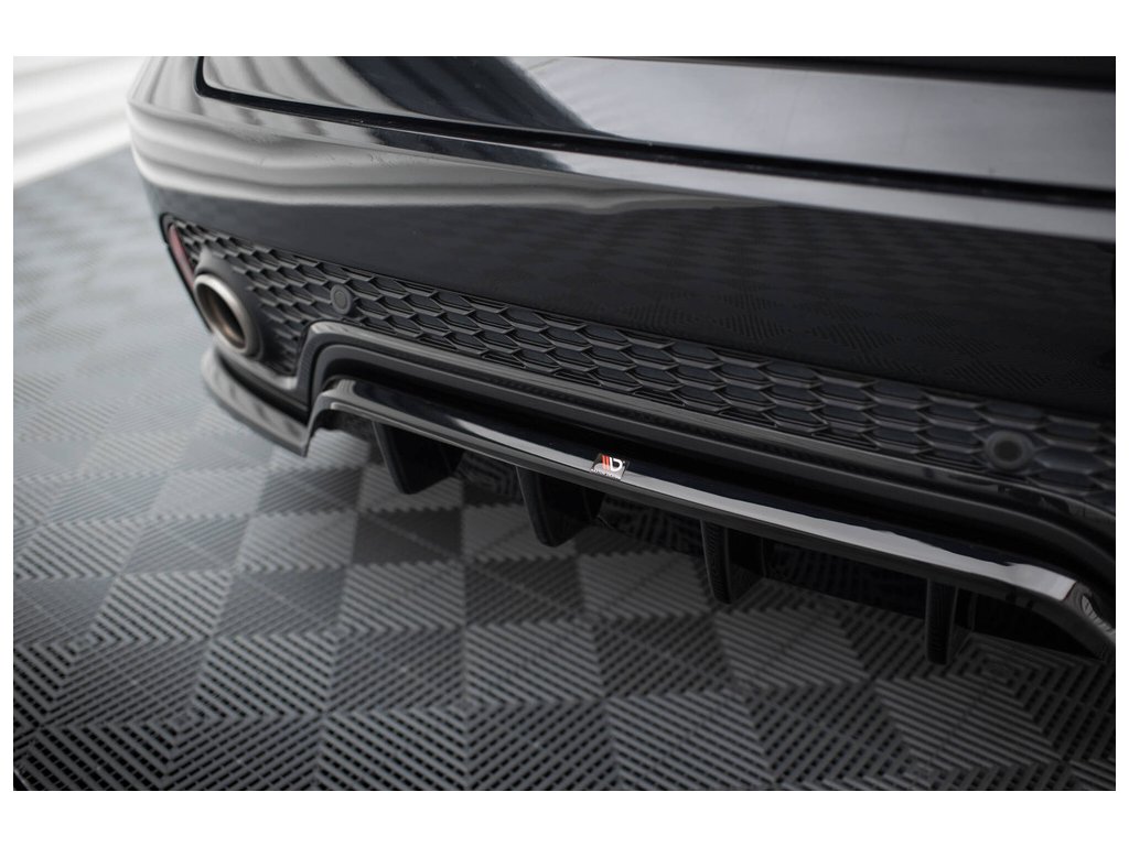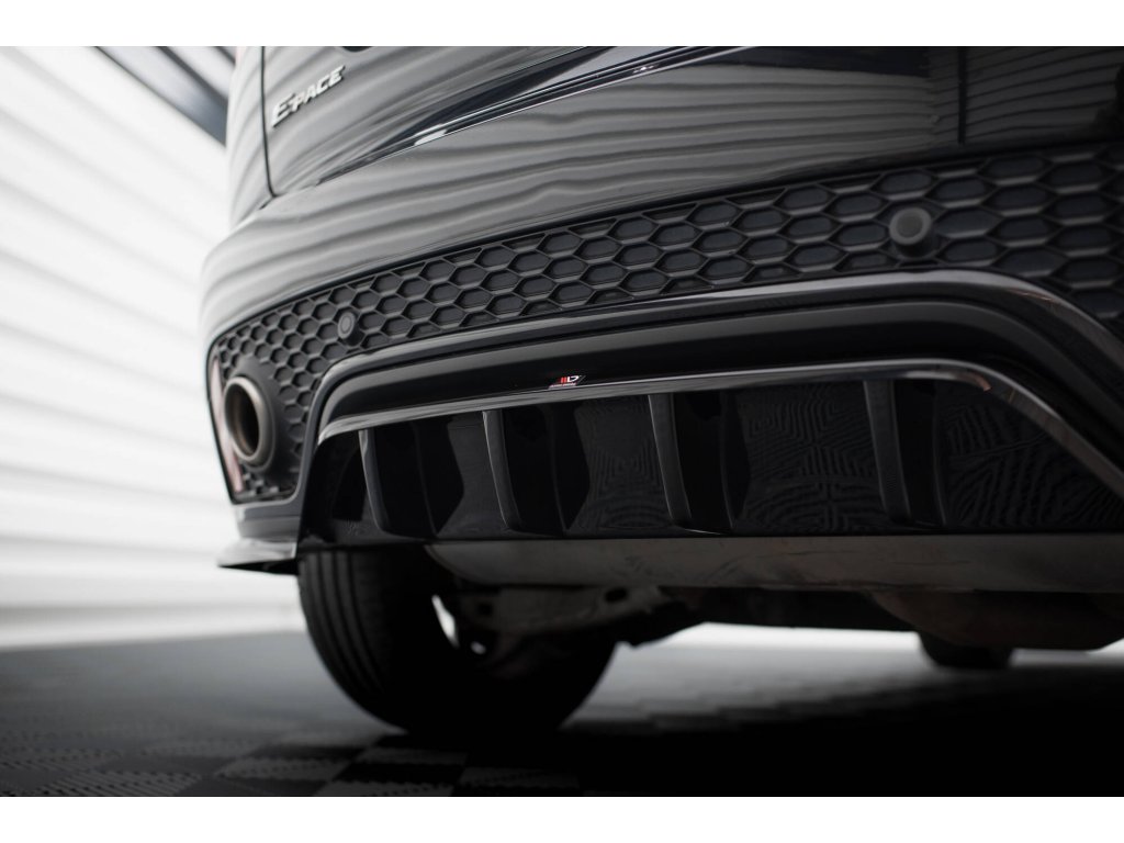 Maxton Design středový spoiler pod zadní nárazník s žebrováním pro vozidlo Jaguar E-Pace Mk1 R-Dynamic . Povrchová úprava spoileru černý lesklý plast ABS.