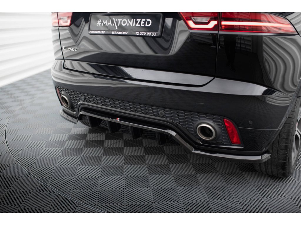 Maxton Design středový spoiler pod zadní nárazník s žebrováním pro Jaguar E-Pace Mk1 R-Dynamic, černý lesklý plast ABS