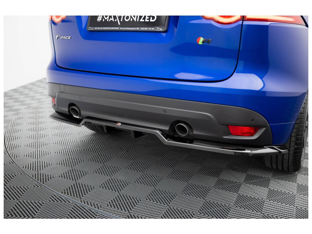 Maxton Design středový spoiler pod zadní nárazník s žebrováním pro Jaguar F-Pace R-Sport Mk1, černý lesklý plast ABS