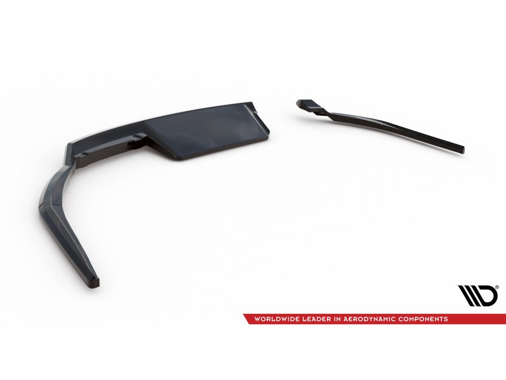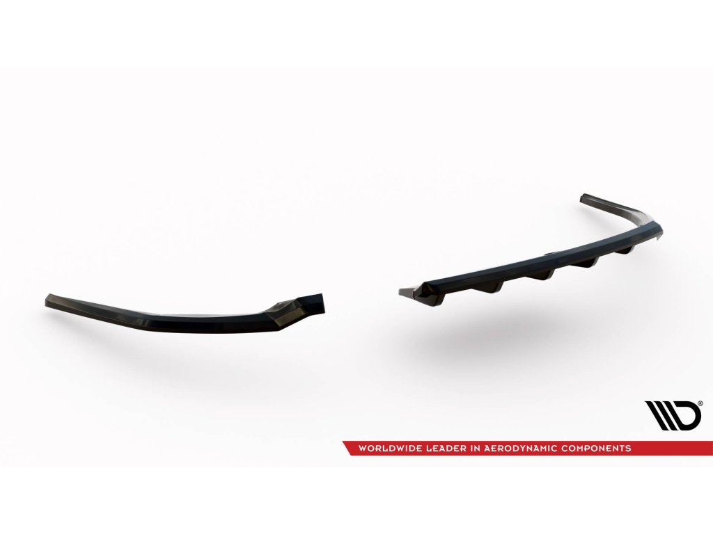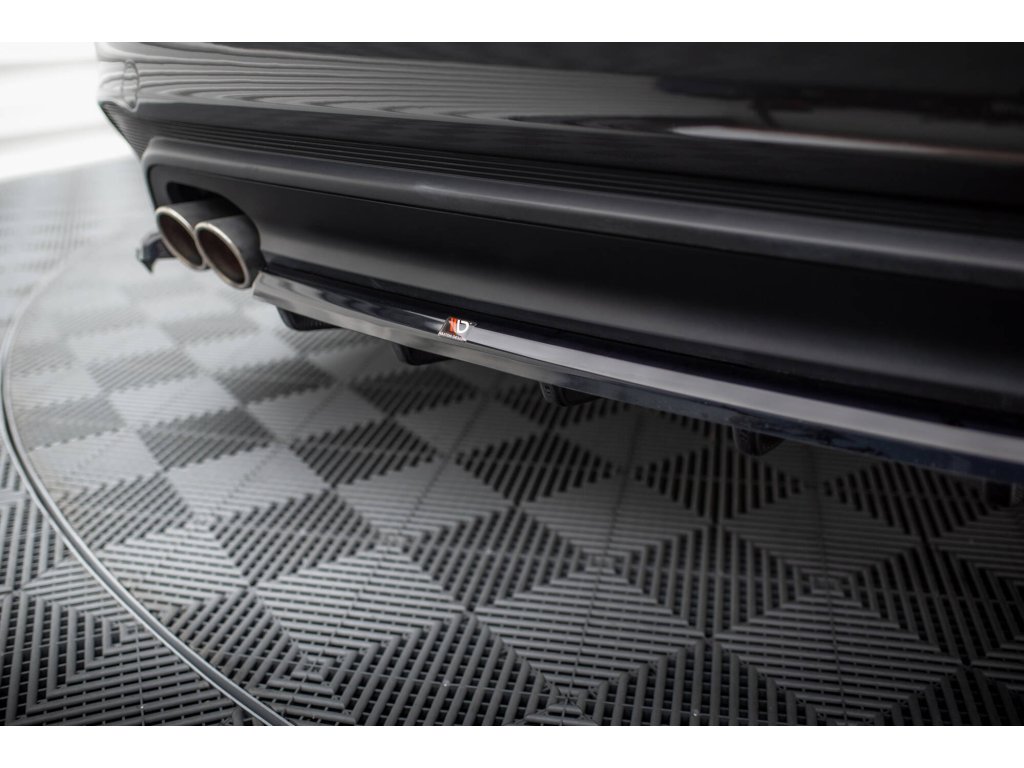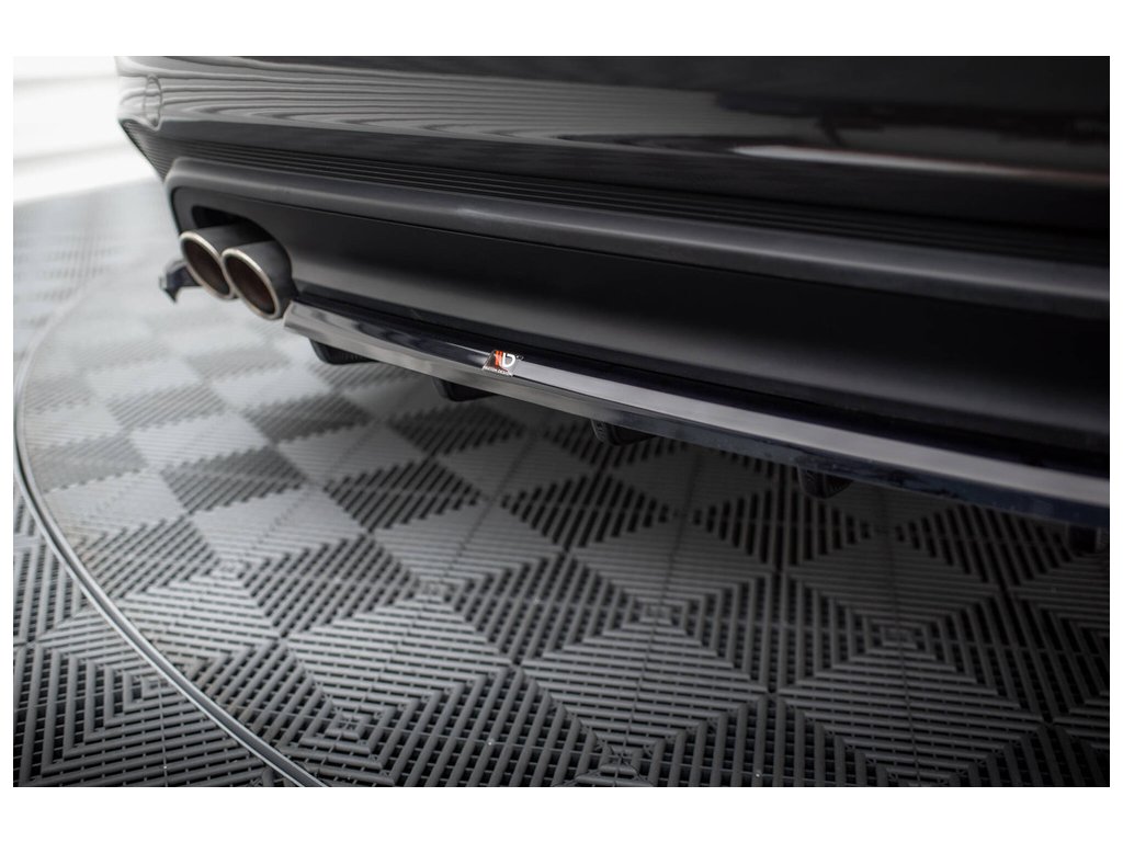 Maxton Design středový spoiler pod zadní nárazník s žebrováním pro vozidlo Jaguar XE Mk1 Facelift . Povrchová úprava spoileru černý lesklý plast ABS.