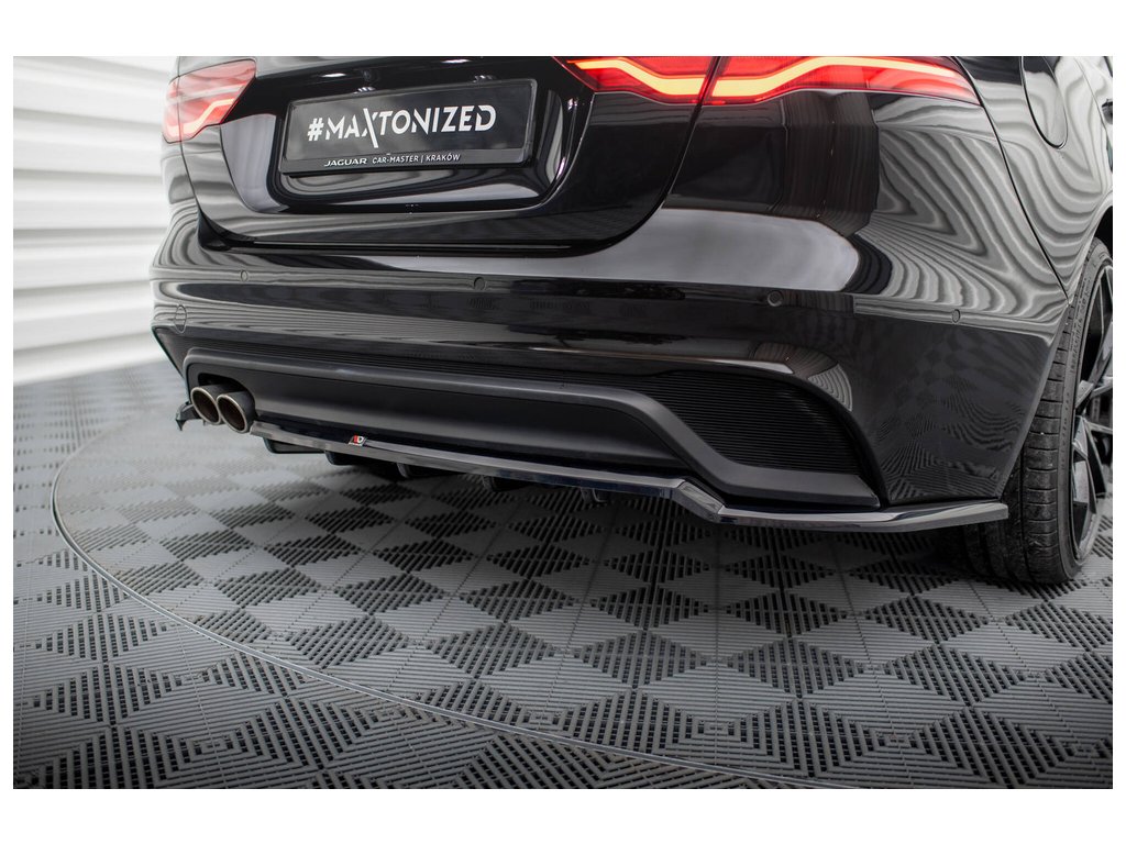 Maxton Design středový spoiler pod zadní nárazník s žebrováním pro Jaguar XE Mk1 Facelift, černý lesklý plast ABS
