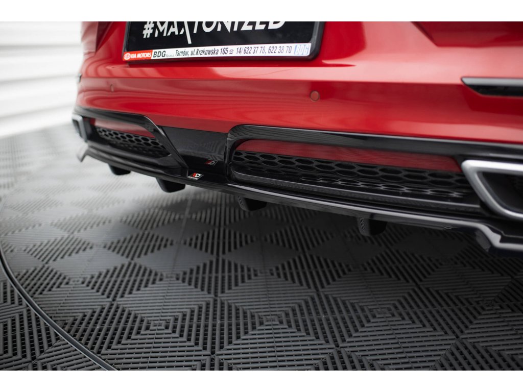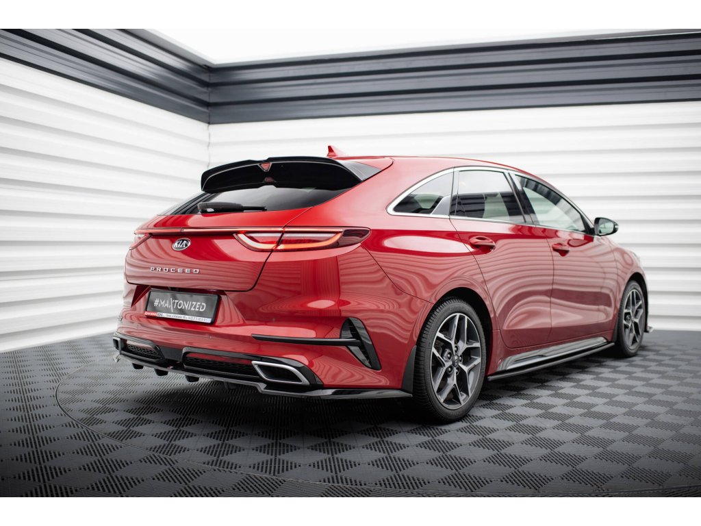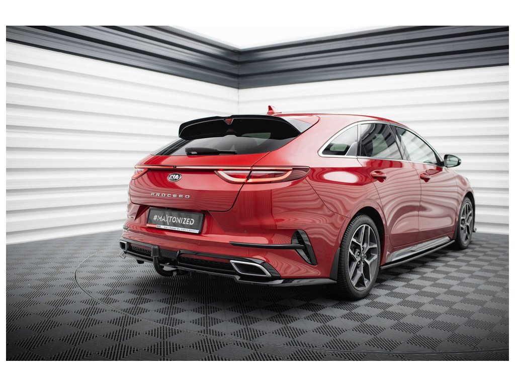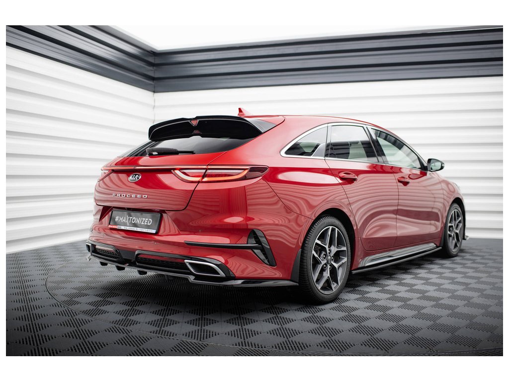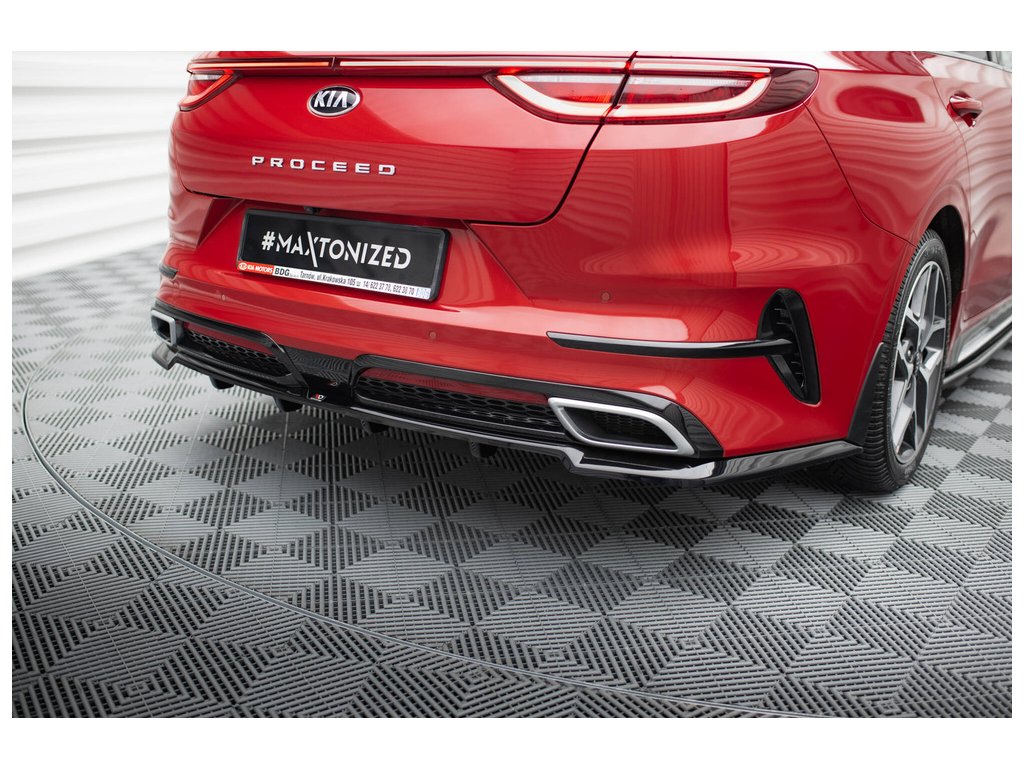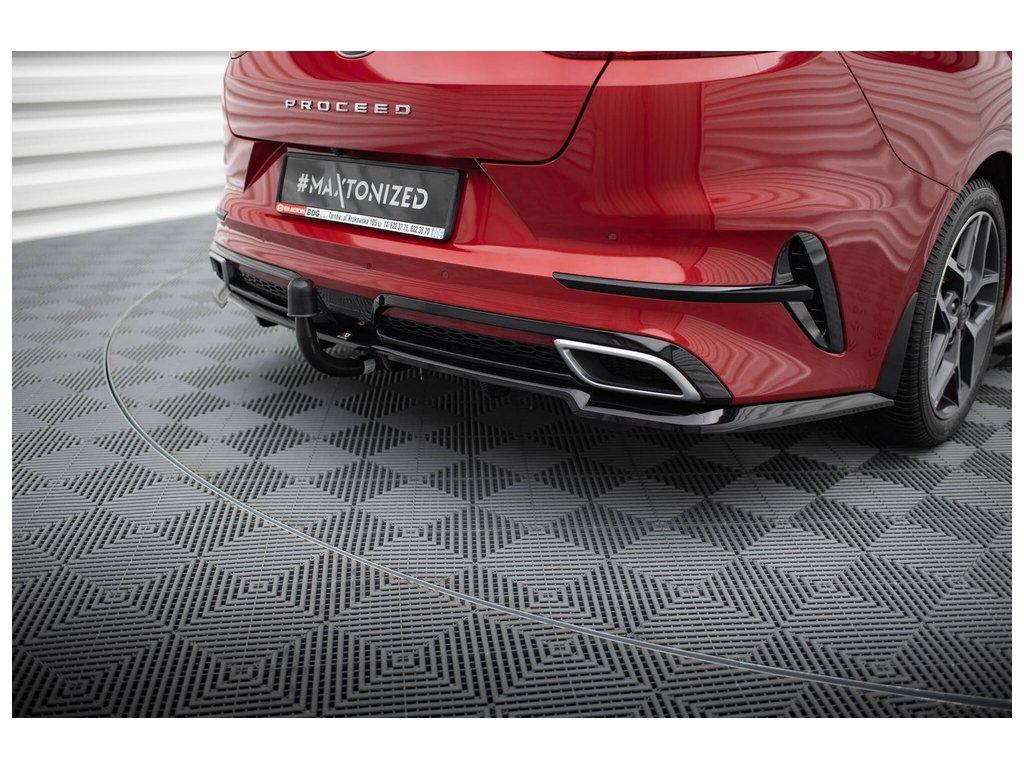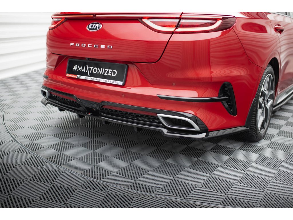 Maxton Design středový spoiler pod zadní nárazník s žebrováním pro vozidlo Kia Proceed Mk1 GT . Povrchová úprava spoileru černý lesklý plast ABS.