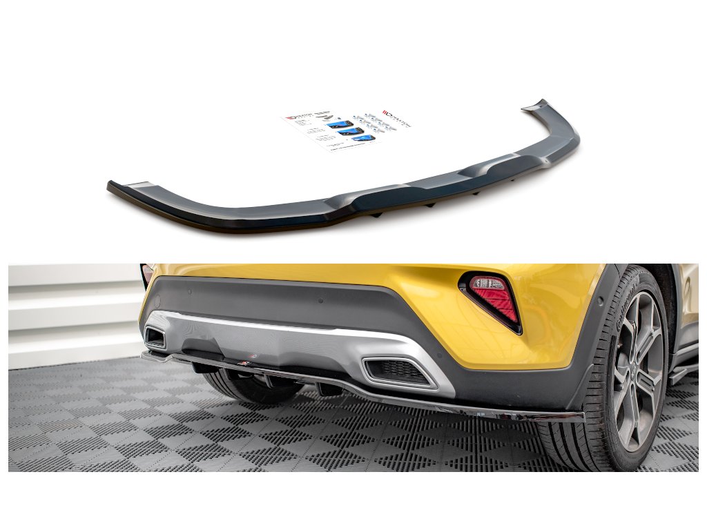 Maxton Design středový spoiler pod zadní nárazník s žebrováním pro vozidlo Kia Xceed Mk1 . Povrchová úprava spoileru carbon-Look.