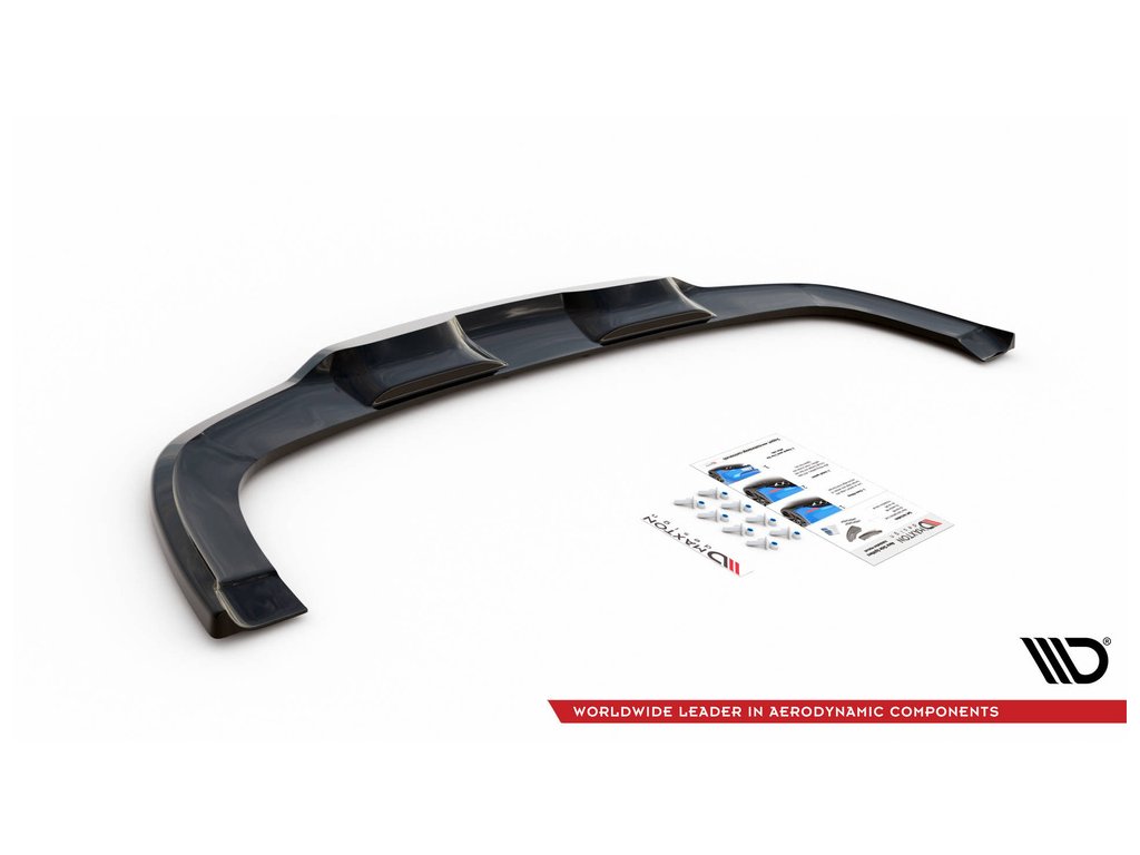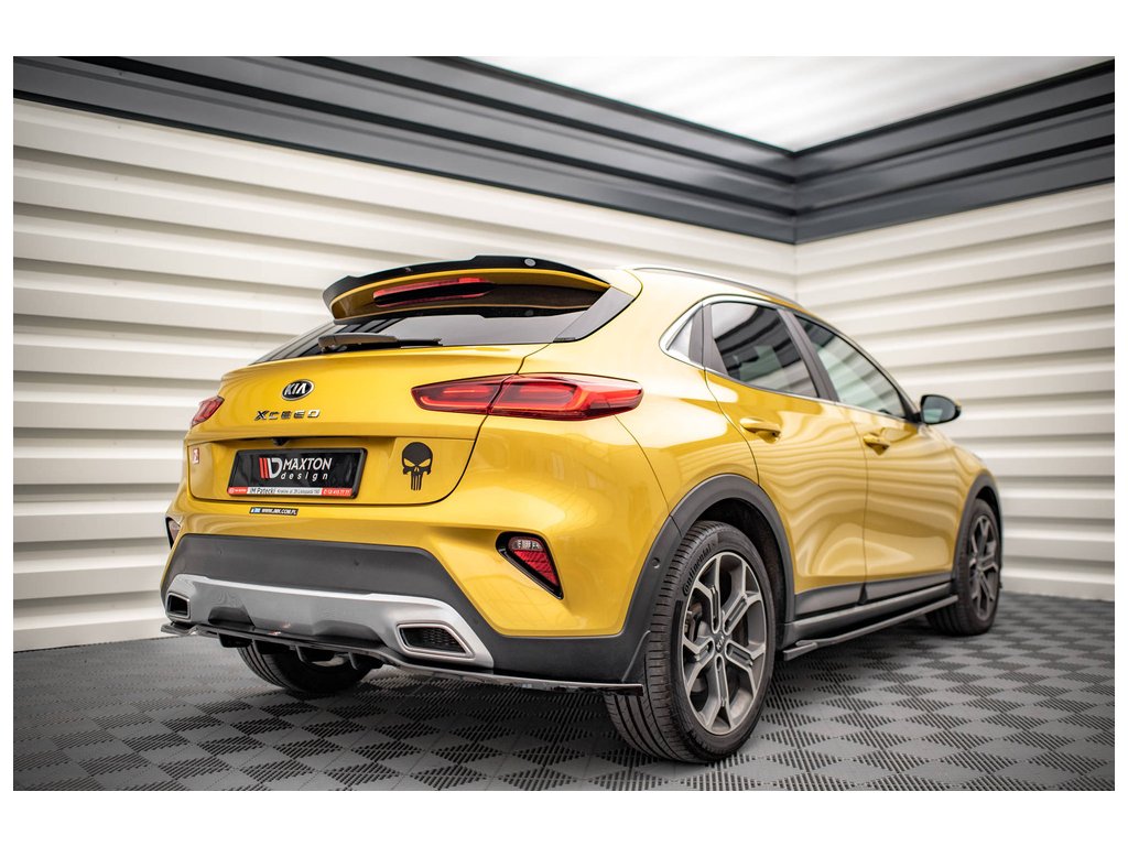 Maxton Design středový spoiler pod zadní nárazník s žebrováním pro vozidlo Kia Xceed Mk1 . Povrchová úprava spoileru černý lesklý plast ABS.