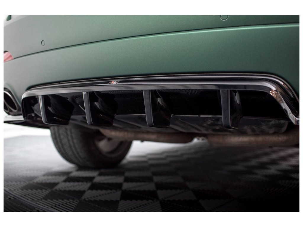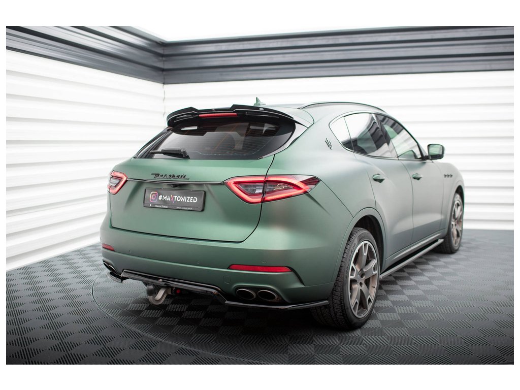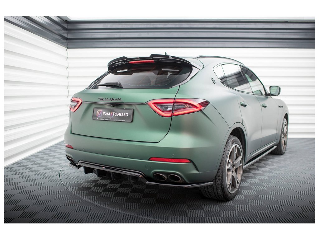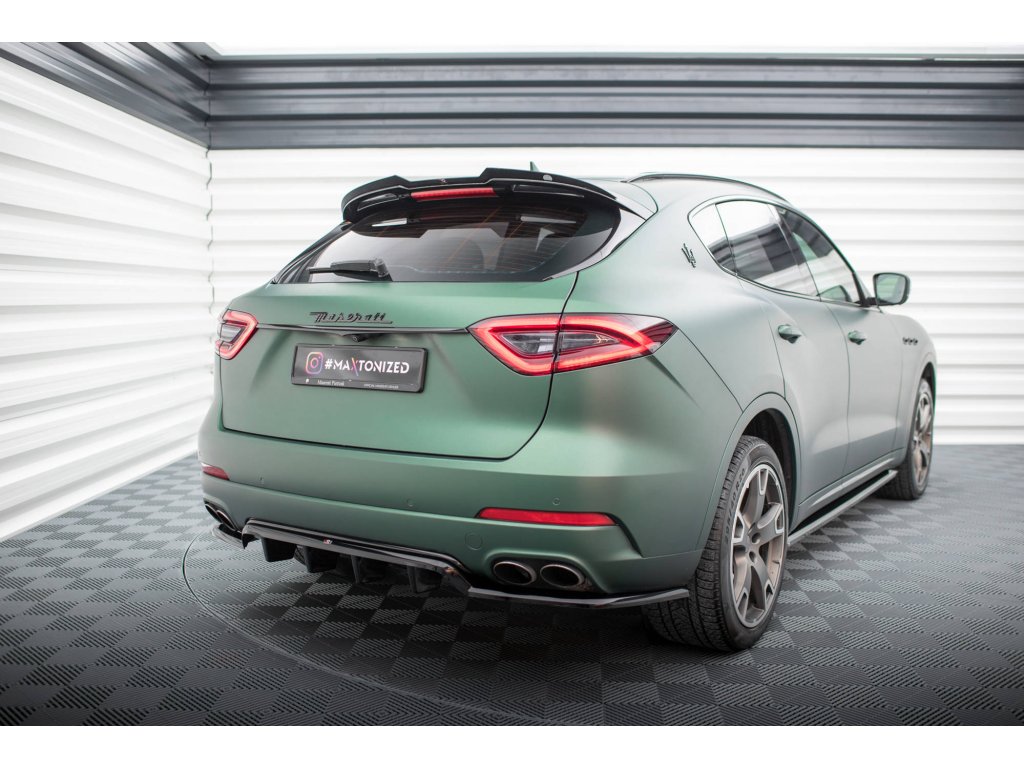 Maxton Design středový spoiler pod zadní nárazník s žebrováním pro vozidlo Maserati Levante Mk1 Standard . Povrchová úprava spoileru černý lesklý plast ABS.
