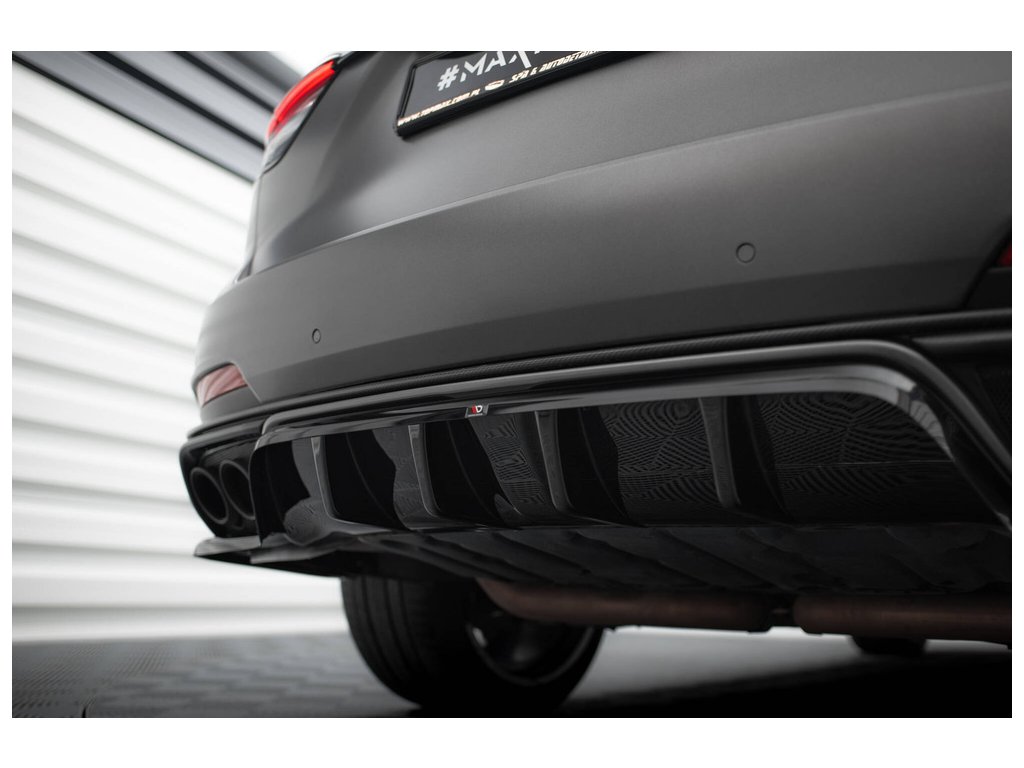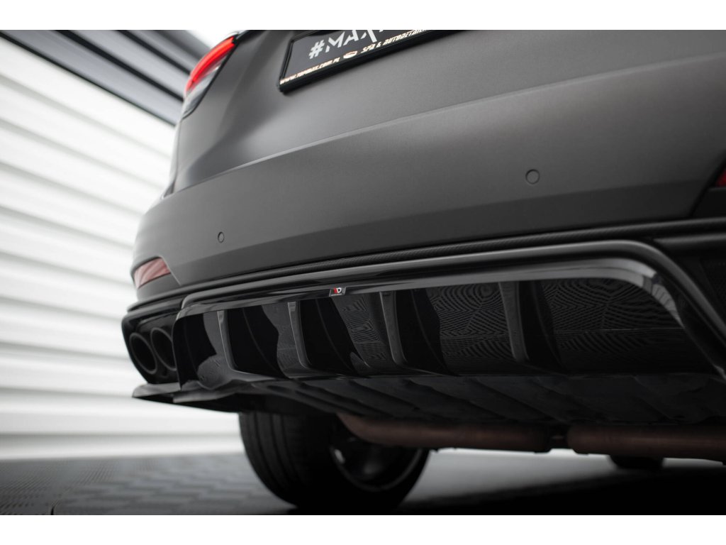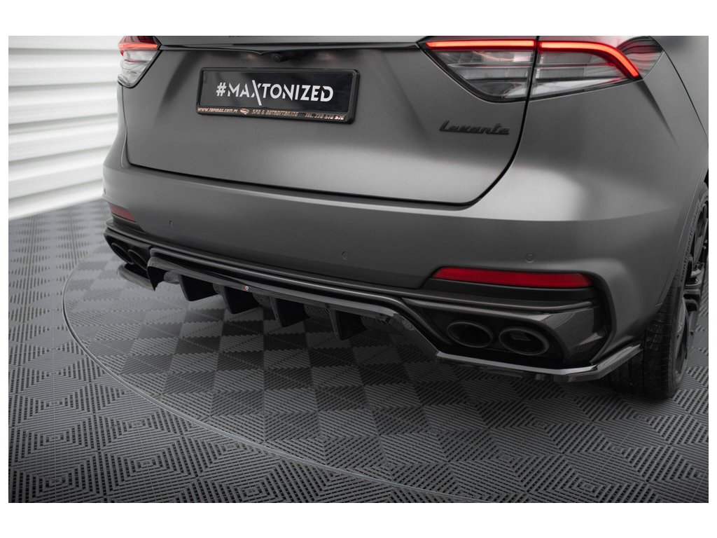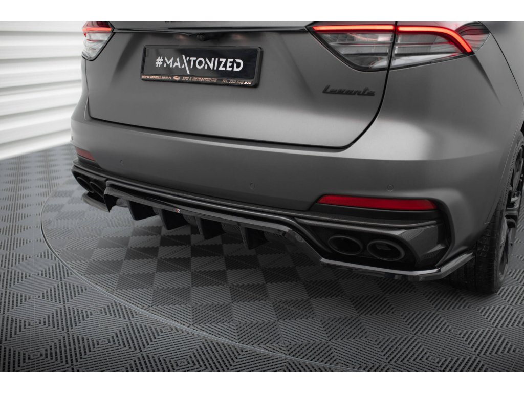 Maxton Design středový spoiler pod zadní nárazník s žebrováním pro vozidlo Maserati Levante Mk1 Trofeo . Povrchová úprava spoileru černý lesklý plast ABS.