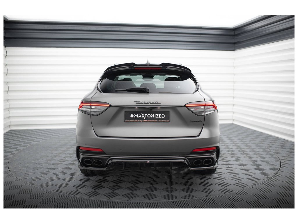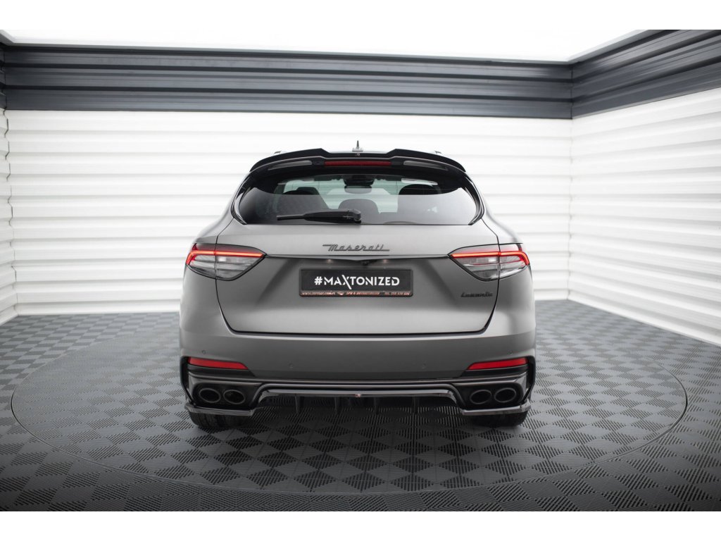 Maxton Design středový spoiler pod zadní nárazník s žebrováním pro Maserati Levante Mk1 Trofeo, černý lesklý plast ABS