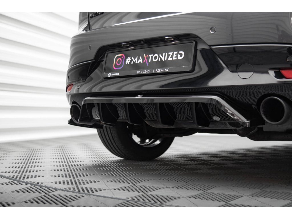 Maxton Design středový spoiler pod zadní nárazník s žebrováním pro Mazda 3 Mk4, černý lesklý plast ABS