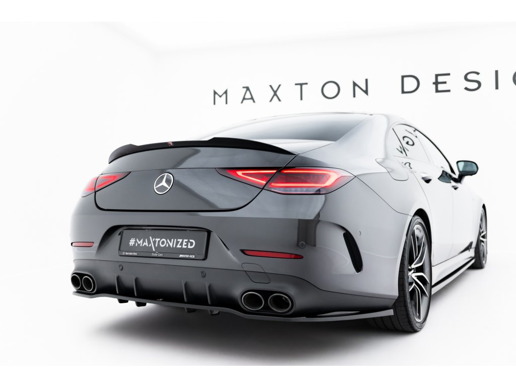 Maxton Design středový spoiler pod zadní nárazník s žebrováním pro vozidlo Mercedes CLS C 257/53AMG . Povrchová úprava spoileru černý lesklý plast ABS.