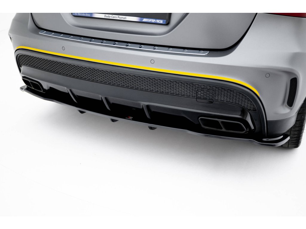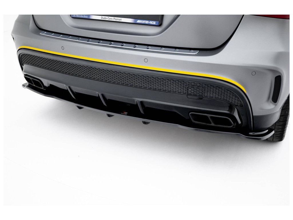 Středový spoiler zadního nárazníku (WITH VERTICAL BARS) MERCEDES-BENZ GLA 45 AMG SUV (X156) PREFACE, povrchová úprava černý lesklý plast ABS.
