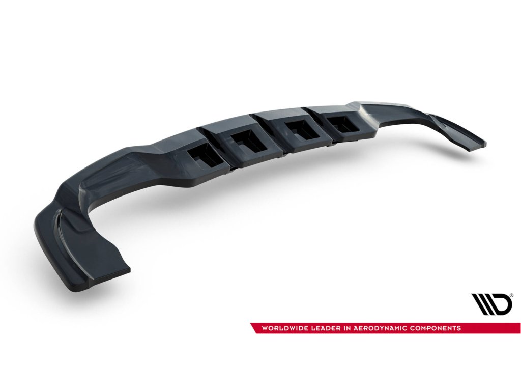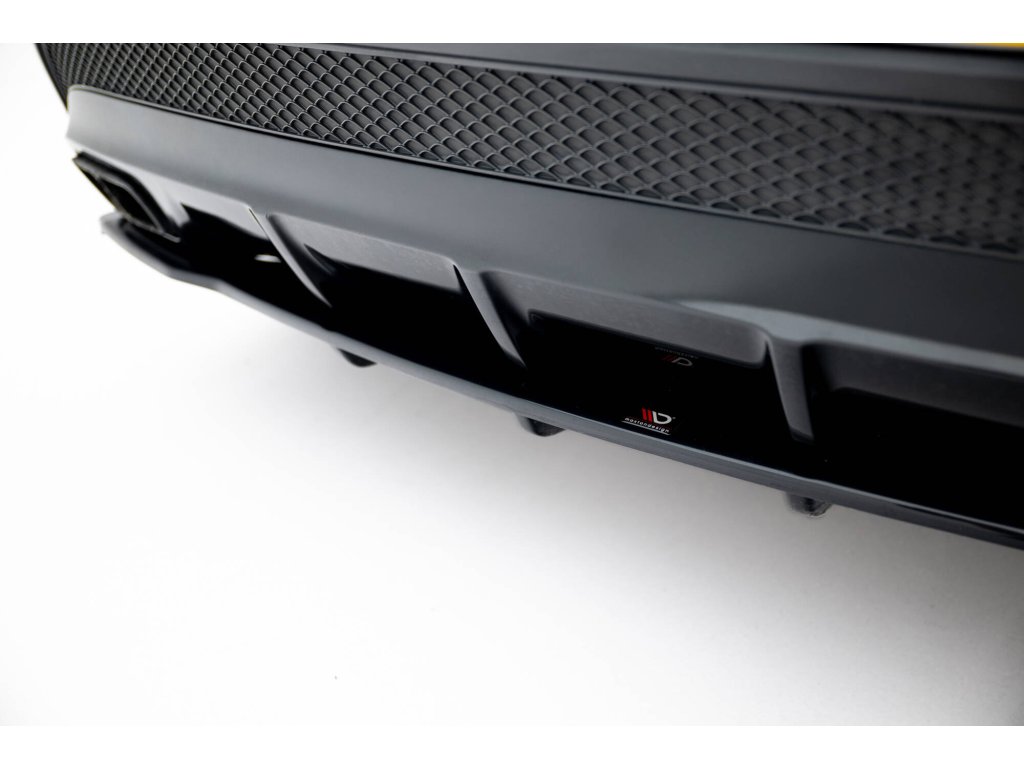 Maxton Design středový spoiler pod zadní nárazník s žebrováním pro vozidlo Mercedes GLA X156/AMG . Povrchová úprava spoileru černý lesklý plast ABS.
