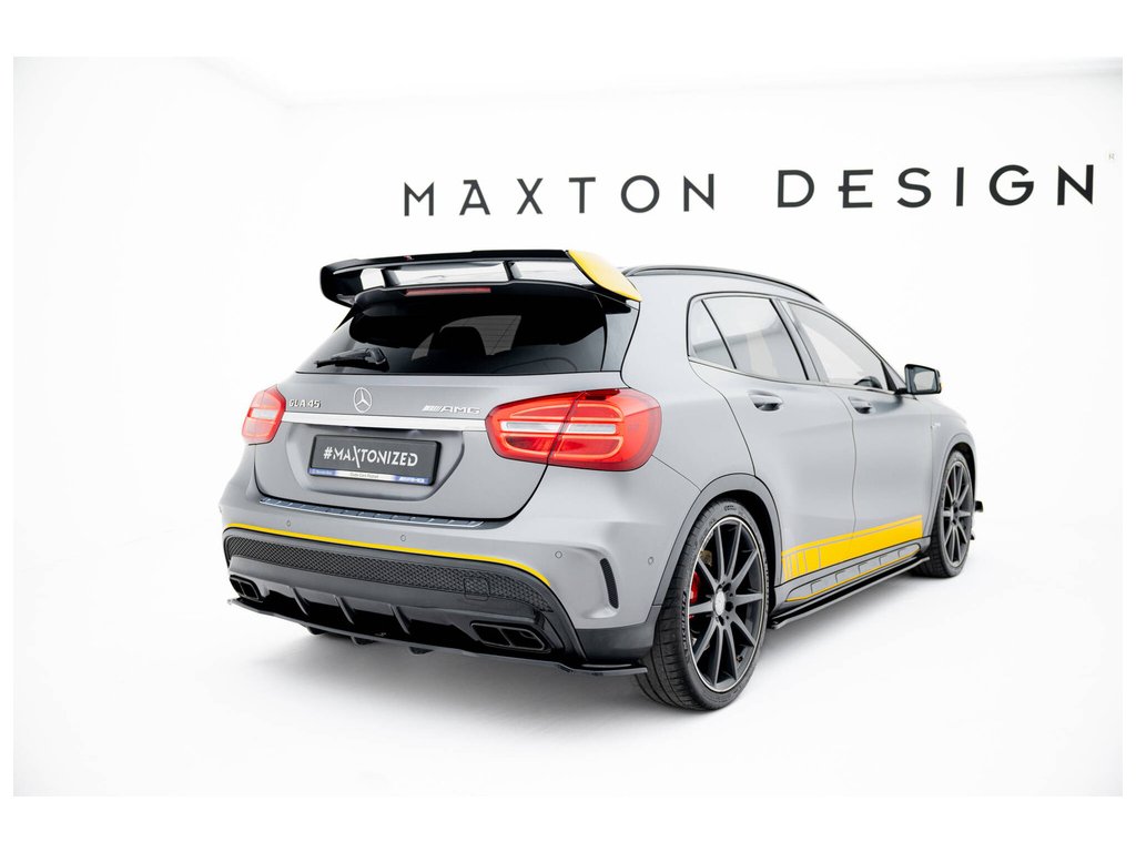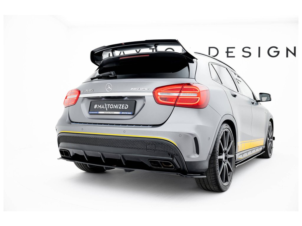 Maxton Design středový spoiler pod zadní nárazník s žebrováním pro Mercedes GLA X156/AMG, černý lesklý plast ABS