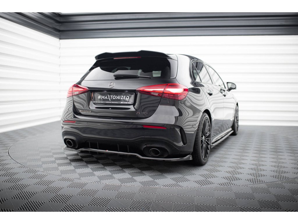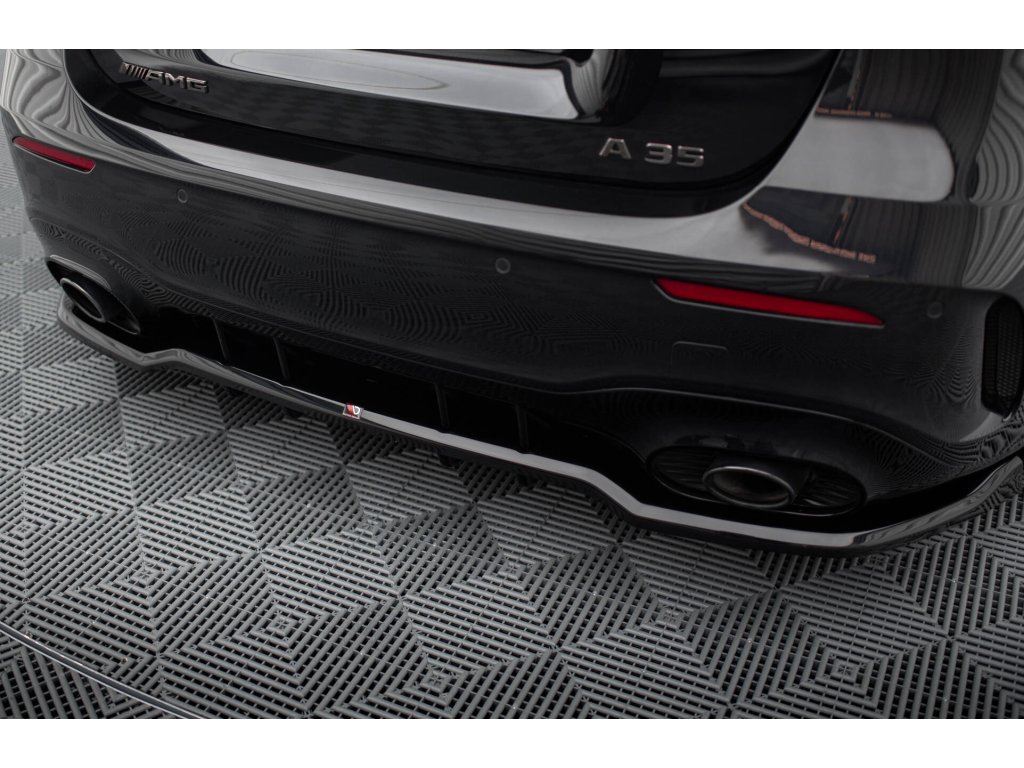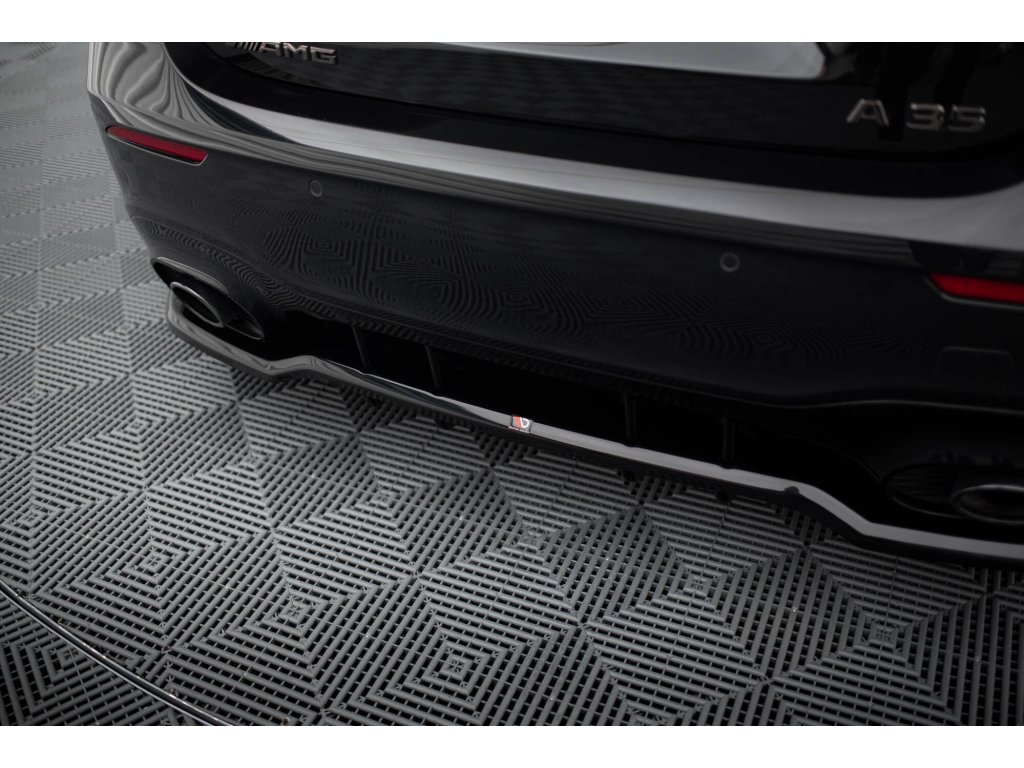 Maxton Design středový spoiler pod zadní nárazník s žebrováním pro Mercedes třída A W177 Facelift A35 AMG, černý lesklý plast ABS, Hatchback