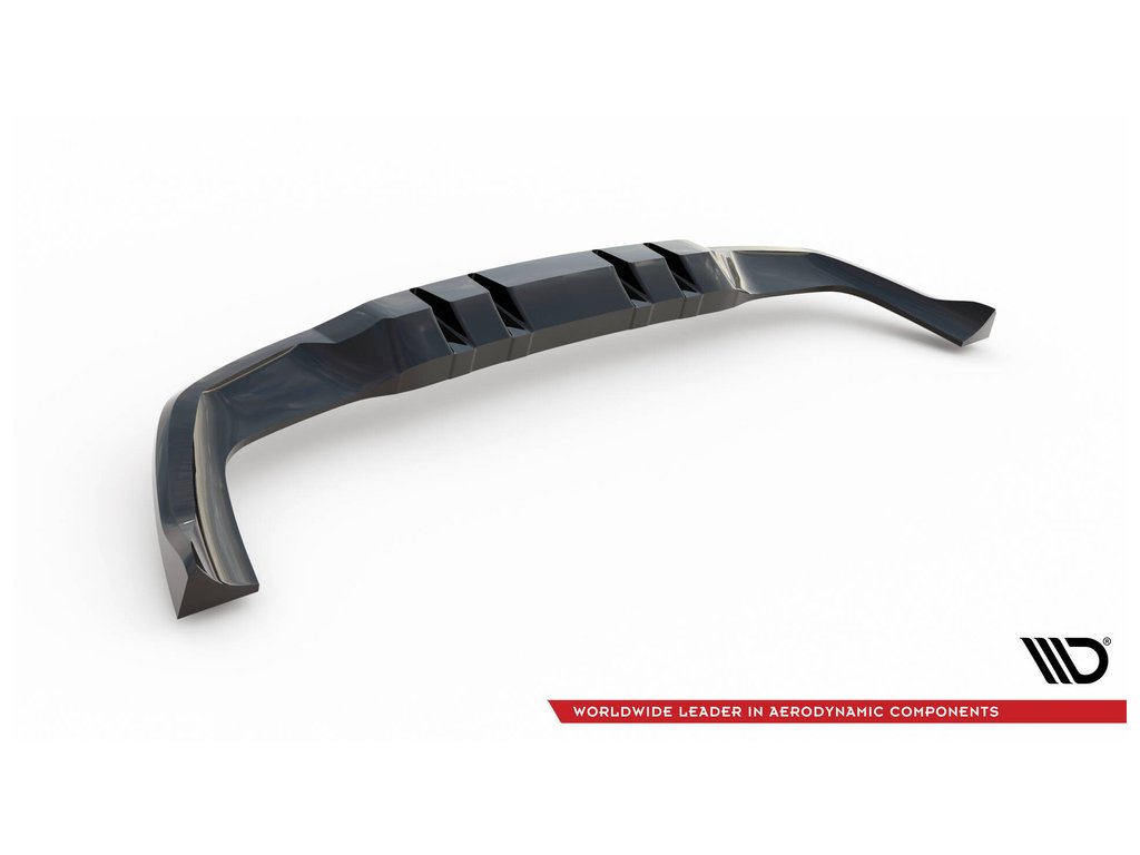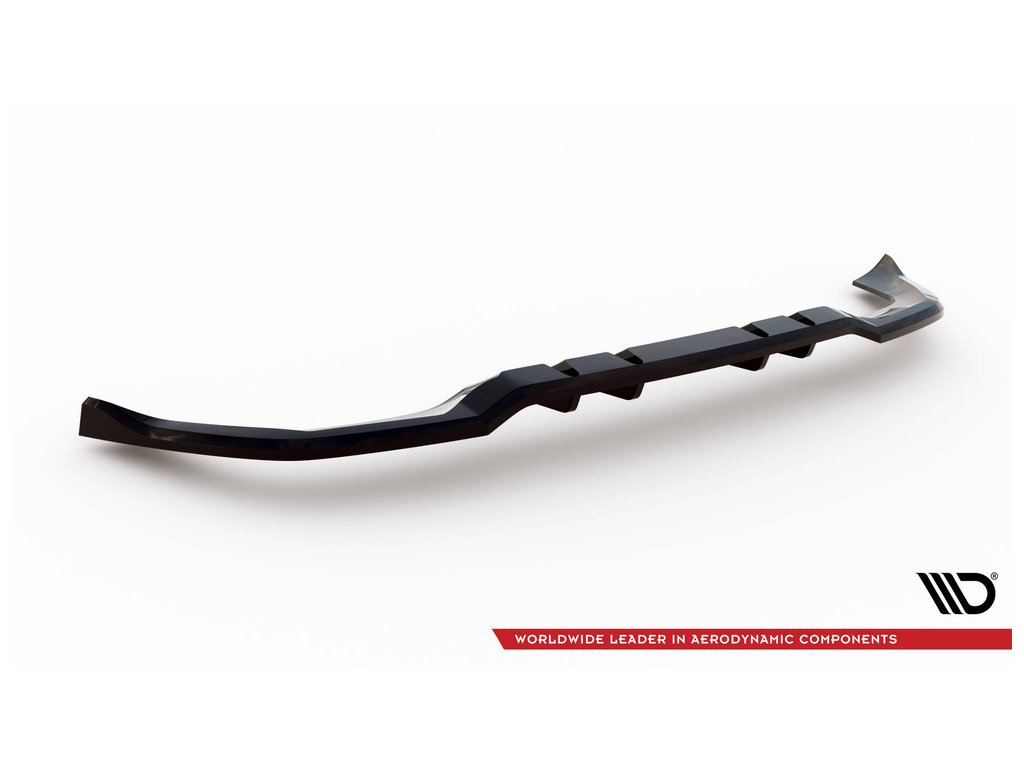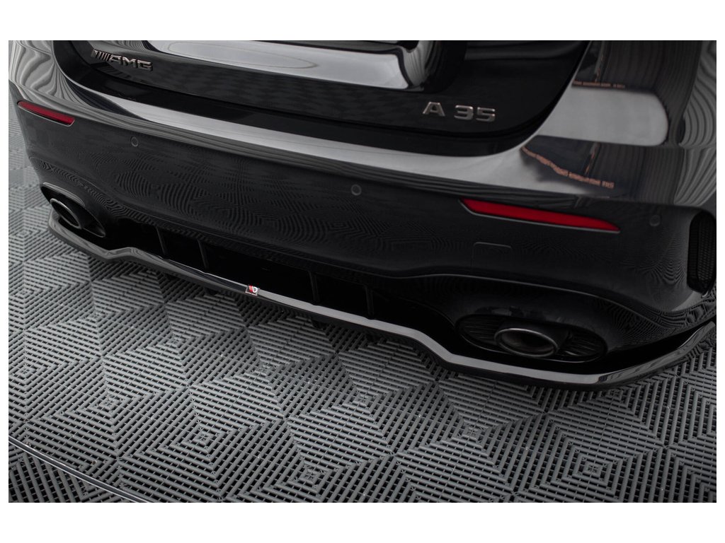 Maxton Design středový spoiler pod zadní nárazník s žebrováním pro vozidlo Mercedes třída A W177 Facelift A35 AMG . Povrchová úprava spoileru černý lesklý plast ABS.