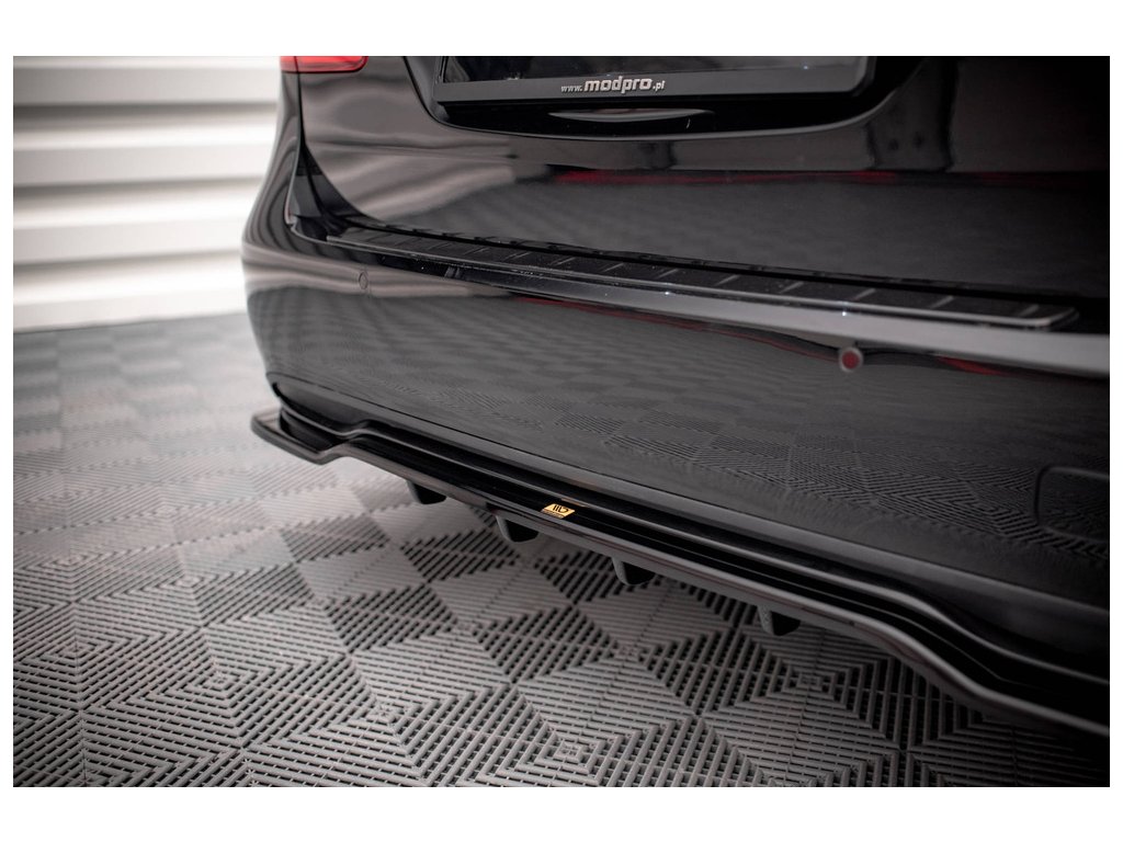 Maxton Design středový spoiler pod zadní nárazník s žebrováním pro Mercedes třída B W246 Facelift, černý lesklý plast ABS