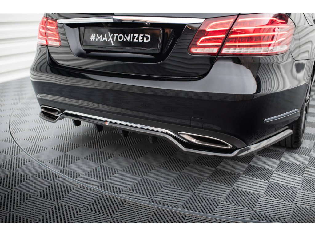 Maxton Design středový spoiler pod zadní nárazník s žebrováním pro Mercedes třída E W212 Facelift/Standard, černý lesklý plast ABS