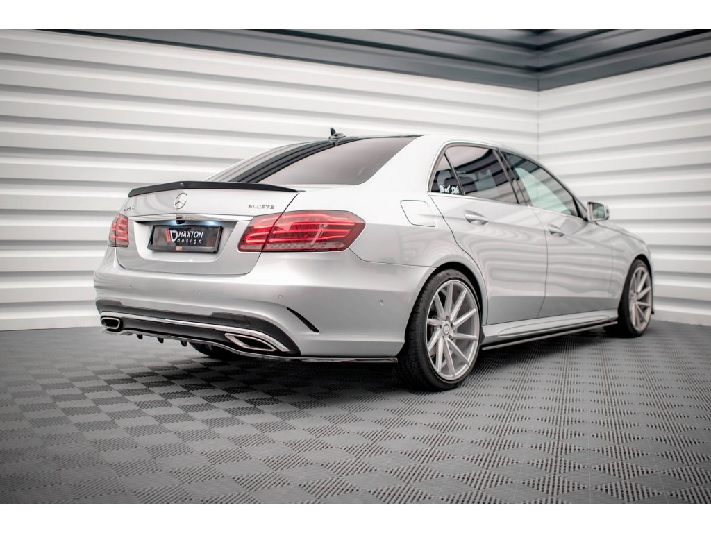 Maxton Design středový spoiler pod zadní nárazník s žebrováním pro vozidlo Mercedes třída E W212 FL/AMG- Line/Sedan . Povrchová úprava spoileru carbon-Look.