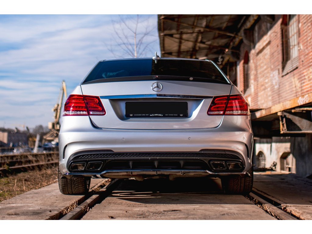 Maxton Design středový spoiler pod zadní nárazník s žebrováním pro vozidlo Mercedes třída E W212 FL/Sedan/E63 AMG . Povrchová úprava spoileru carbon-Look.