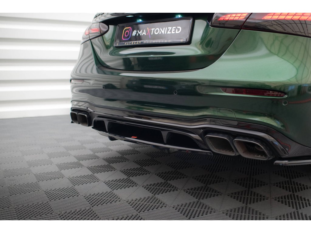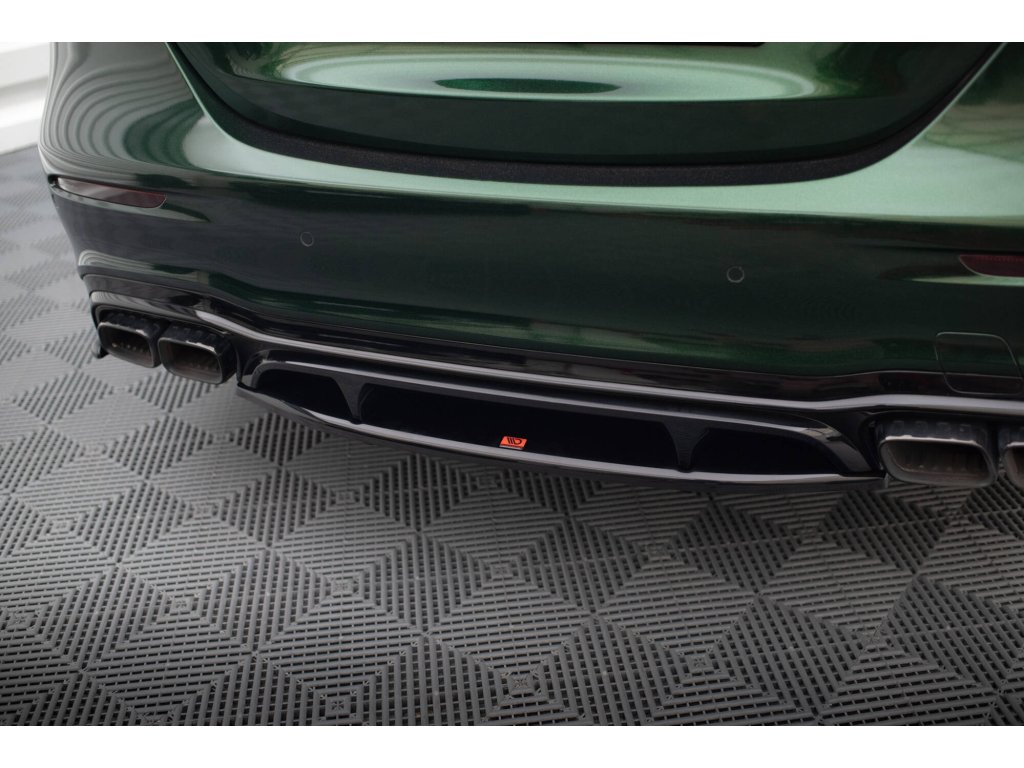 Maxton Design středový spoiler pod zadní nárazník s žebrováním pro vozidlo Mercedes třída E W213 Facelift/63AMG . Povrchová úprava spoileru černý lesklý plast ABS.