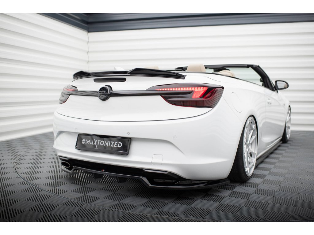 Maxton Design středový spoiler pod zadní nárazník s žebrováním pro Opel Cascada, černý lesklý plast ABS