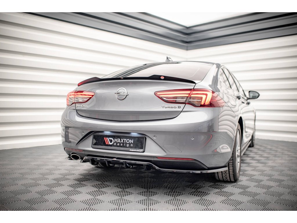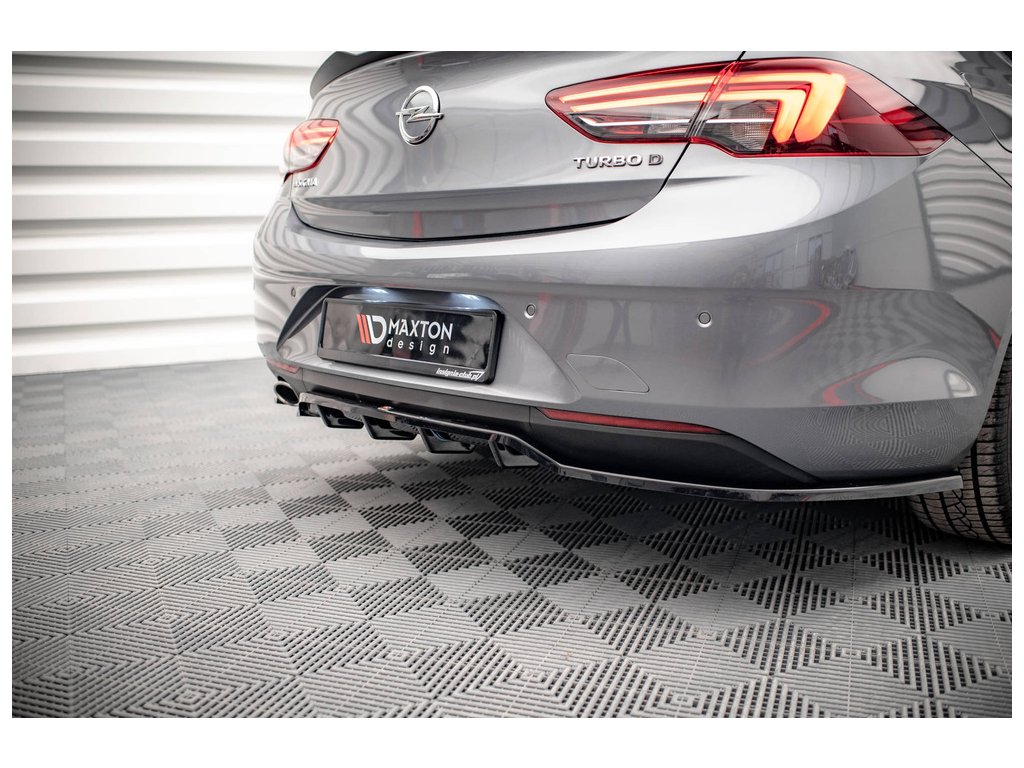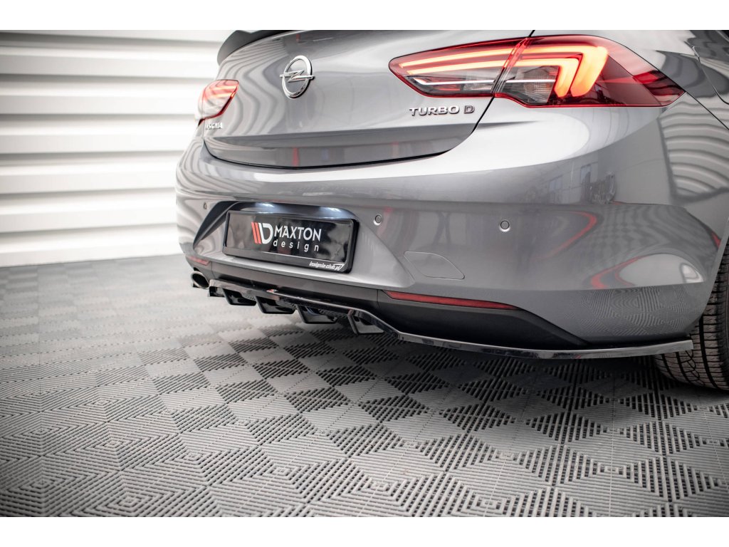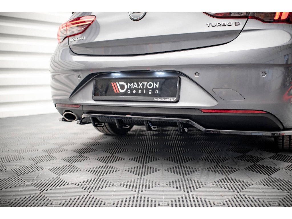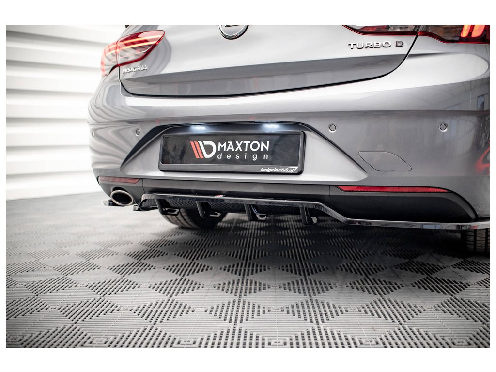 Maxton Design středový spoiler pod zadní nárazník s žebrováním pro vozidlo Opel Insignia Mk2 . Povrchová úprava spoileru černý lesklý plast ABS.