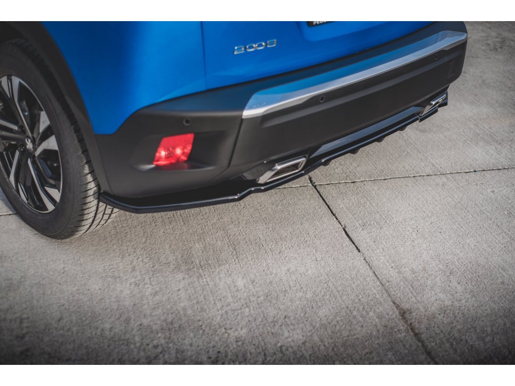 Maxton Design středový spoiler pod zadní nárazník s žebrováním pro Peugeot 2008 Mk2, černý lesklý plast ABS
