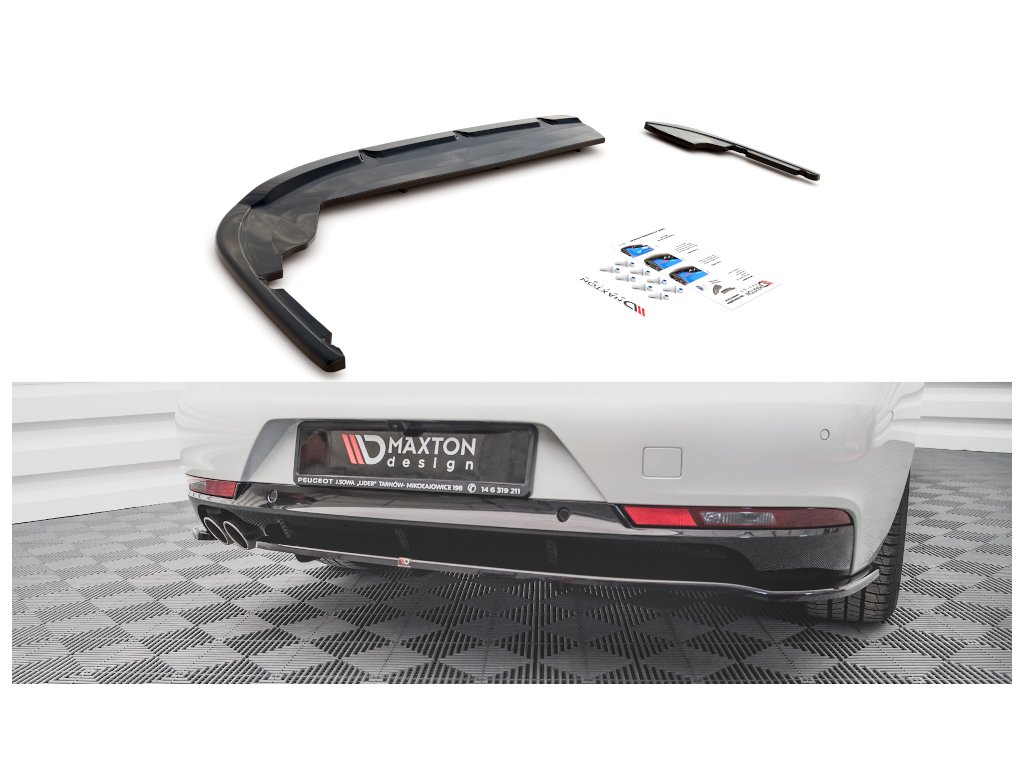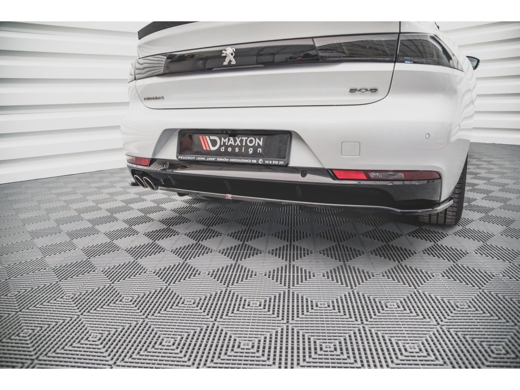 Maxton Design středový spoiler pod zadní nárazník s žebrováním pro vozidlo Peugeot 508 Mk2 . Povrchová úprava spoileru carbon-Look.