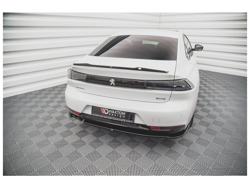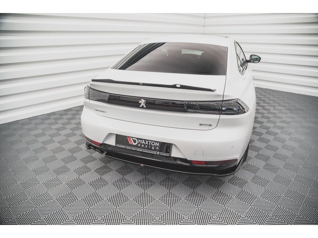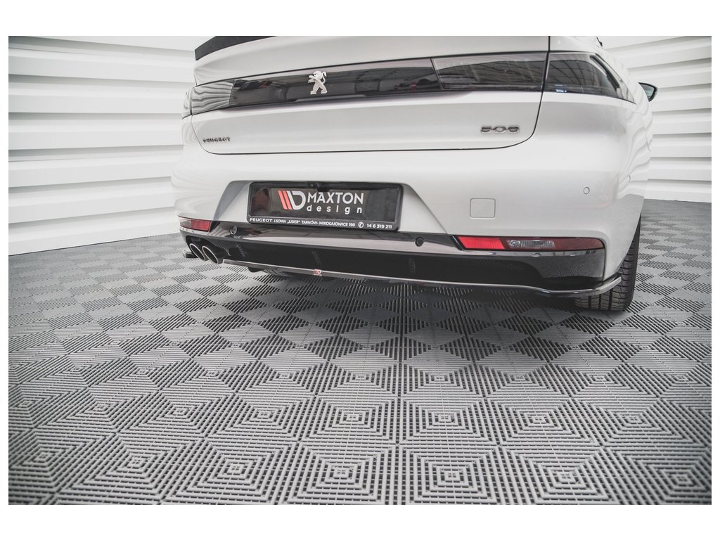Maxton Design středový spoiler pod zadní nárazník s žebrováním pro vozidlo Peugeot 508 Mk2 . Povrchová úprava spoileru černý lesklý plast ABS.