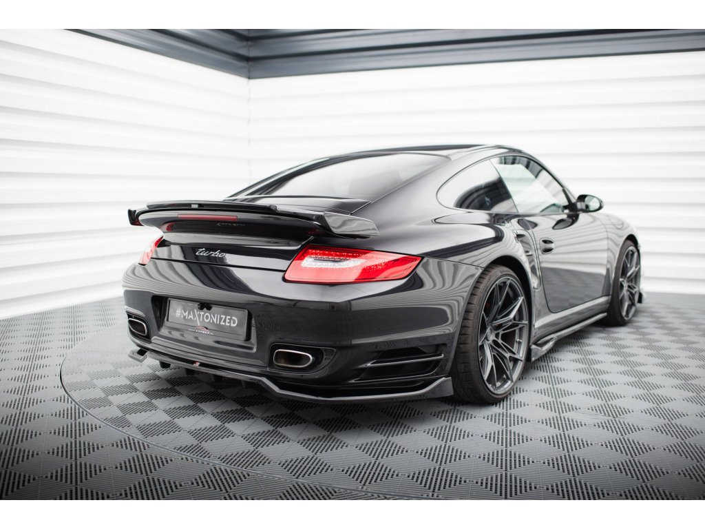Maxton Design středový spoiler pod zadní nárazník s žebrováním pro vozidlo Porsche 911 997 Turbo . Povrchová úprava spoileru černý lesklý plast ABS.