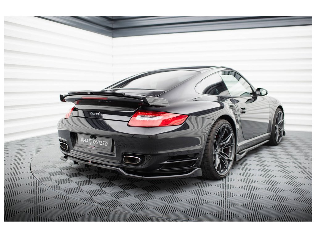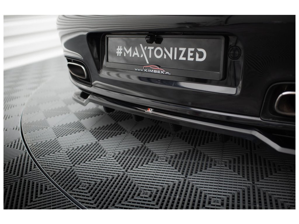 Maxton Design středový spoiler pod zadní nárazník s žebrováním pro Porsche 911 997 Turbo, černý lesklý plast ABS