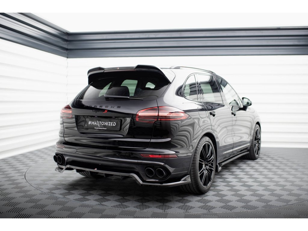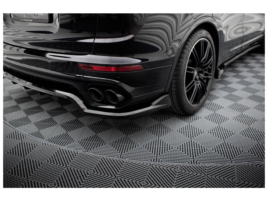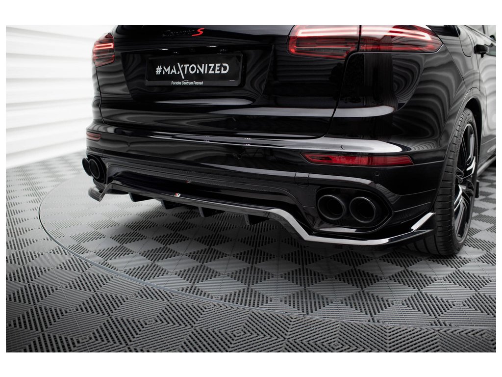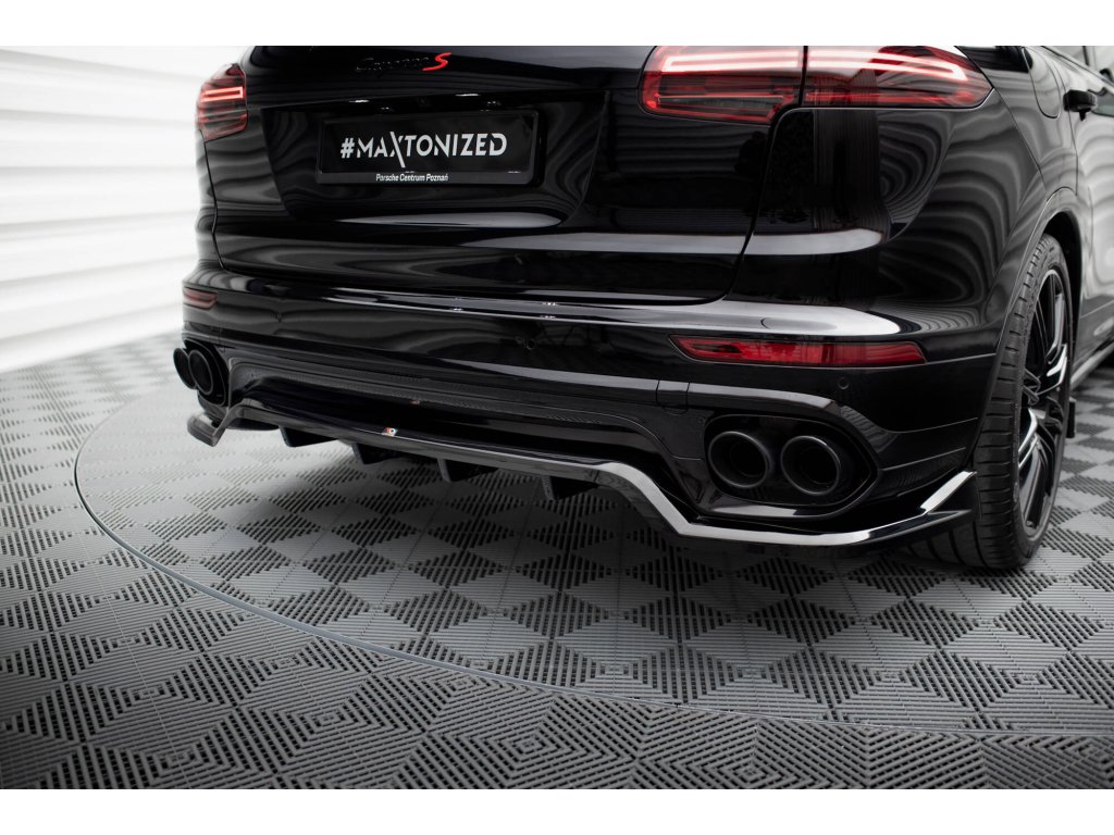 Maxton Design středový spoiler pod zadní nárazník s žebrováním pro vozidlo Porsche Cayenne Mk2 Facelift . Povrchová úprava spoileru černý lesklý plast ABS.