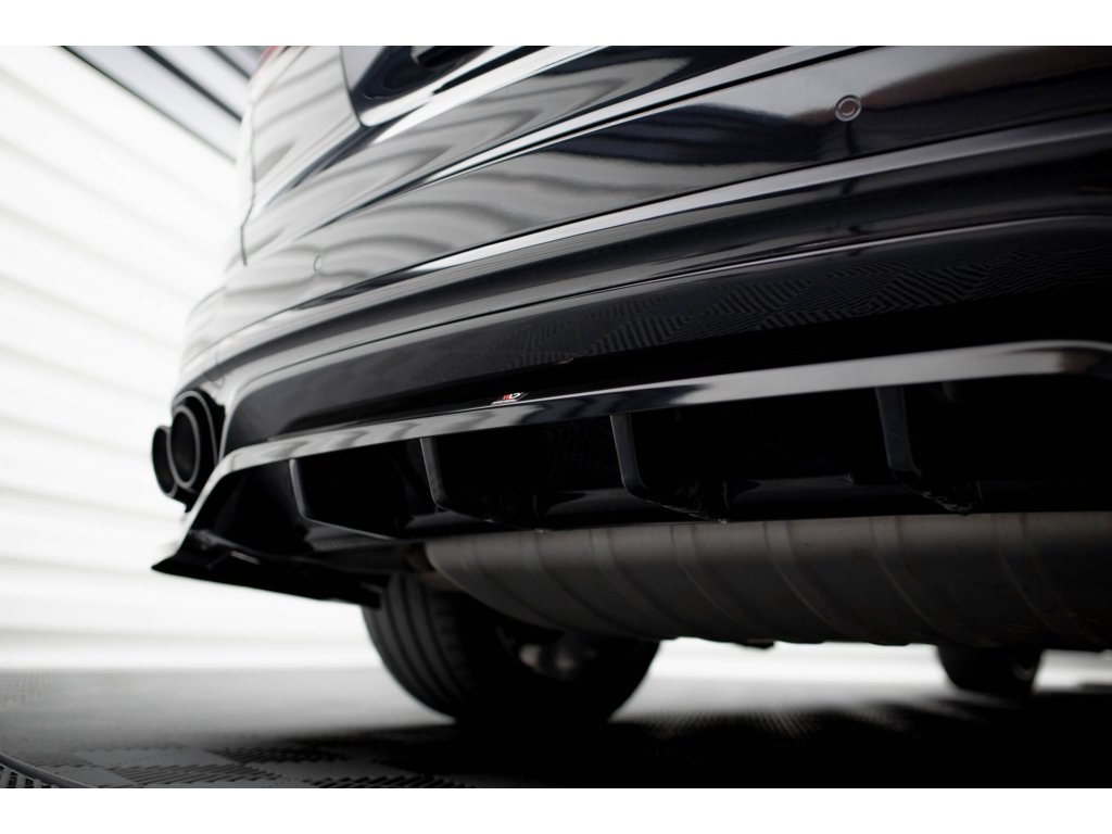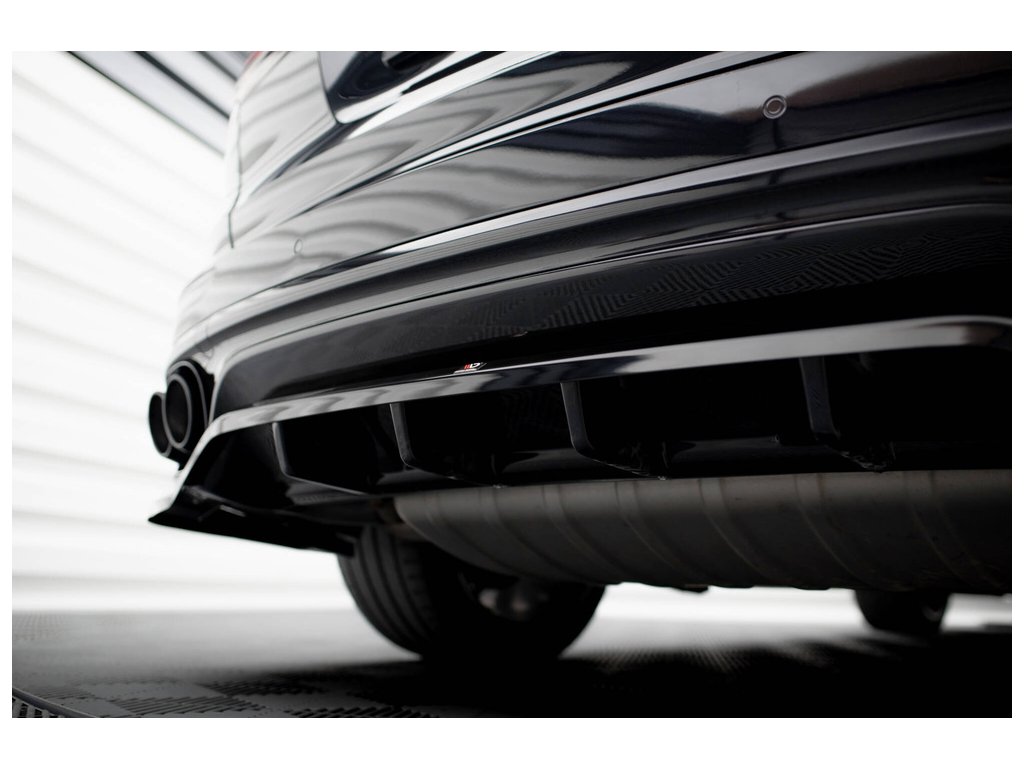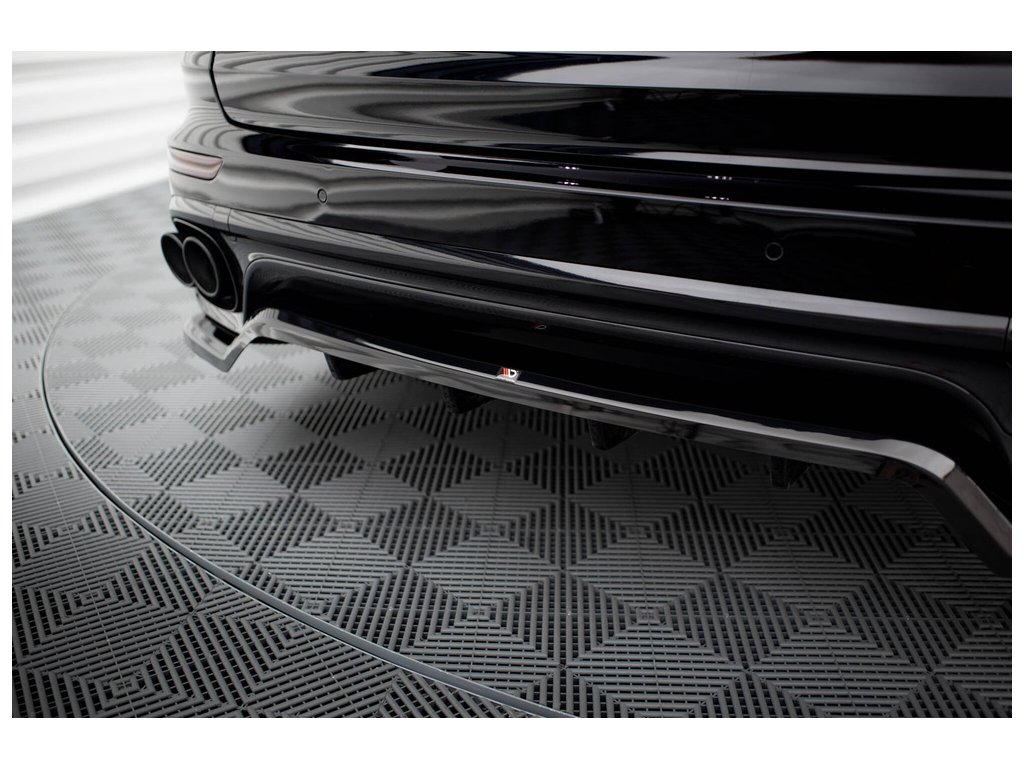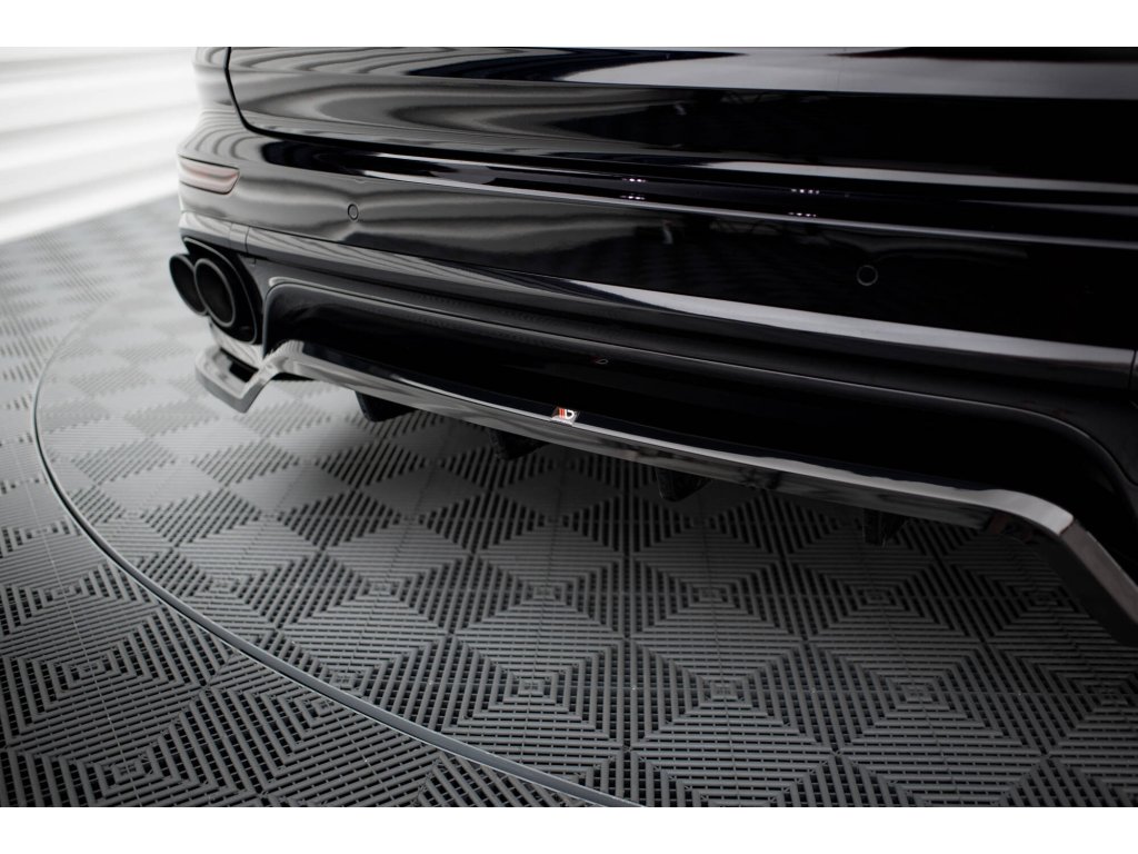 Maxton Design středový spoiler pod zadní nárazník s žebrováním pro vozidlo Porsche Cayenne Mk2 Facelift . Povrchová úprava spoileru černý lesklý plast ABS.