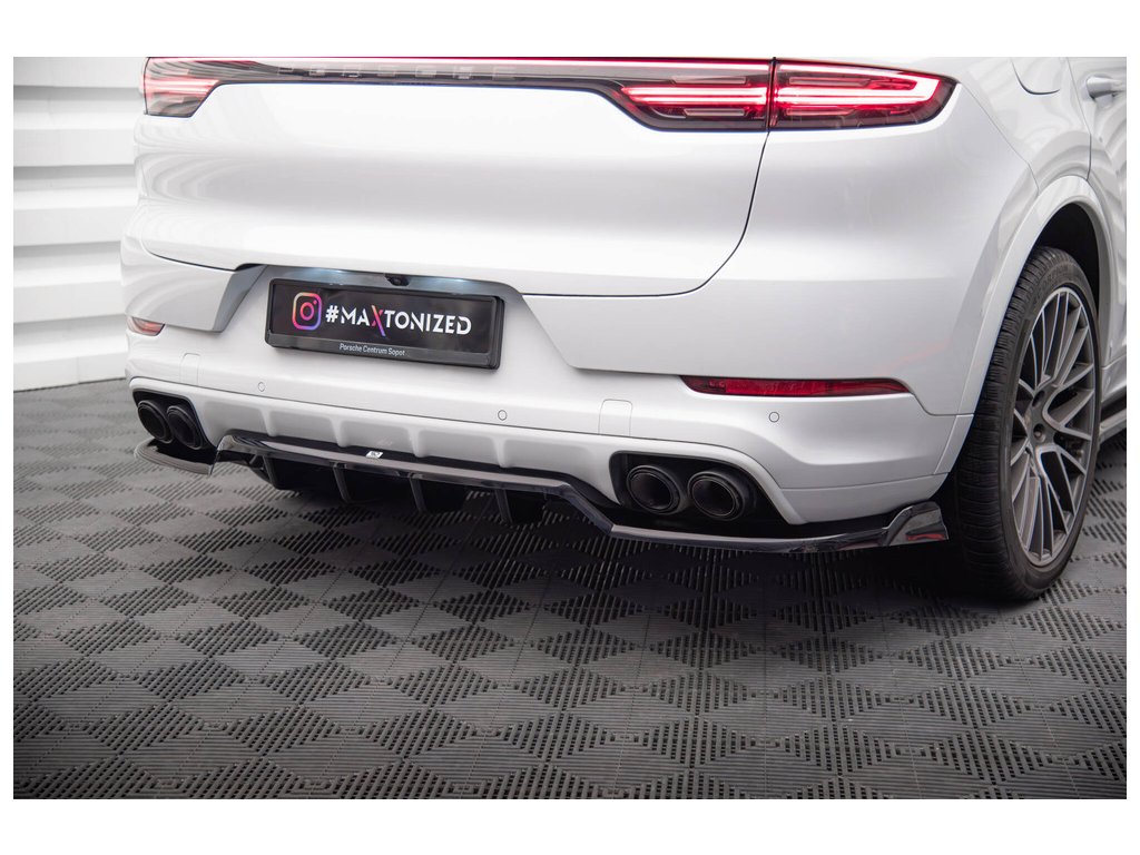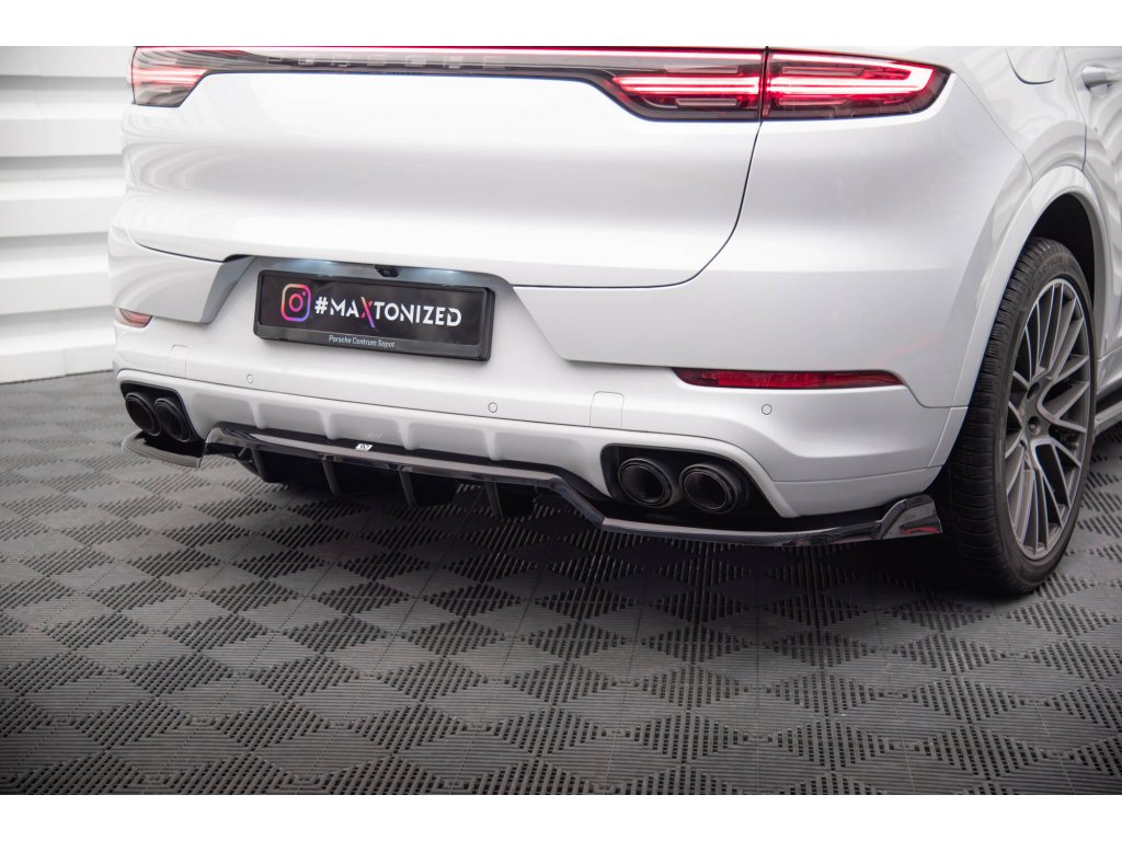 Maxton Design středový spoiler pod zadní nárazník s žebrováním pro Porsche Cayenne Mk3 Coupe, černý lesklý plast ABS